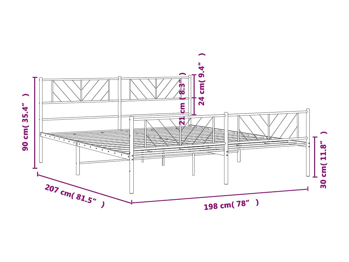 Cadre de lit métal avec tête de lit-pied de lit blanc 193x203