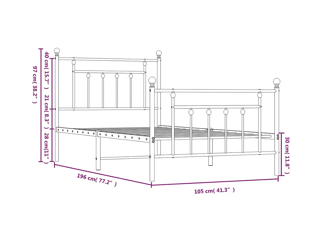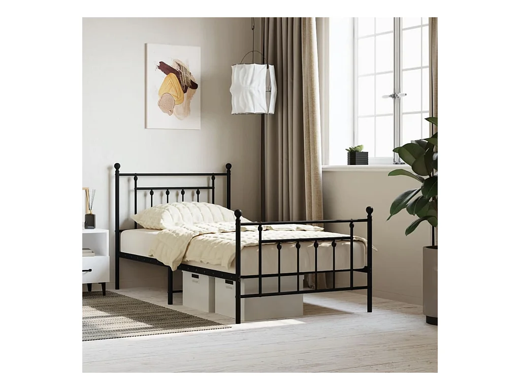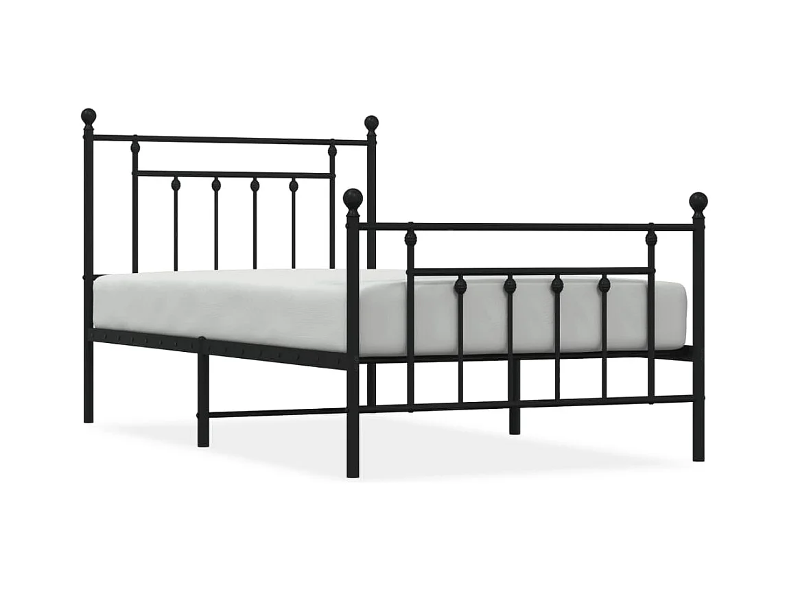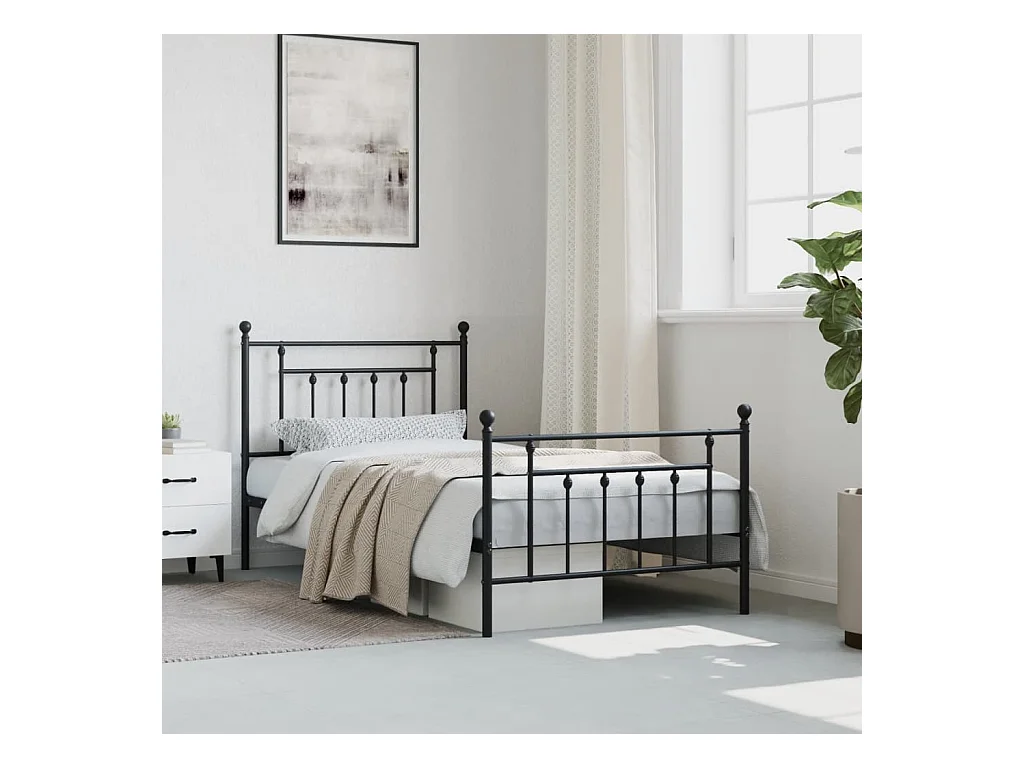 Cadre de lit métal avec tête de lit-pied de lit noir 100x190