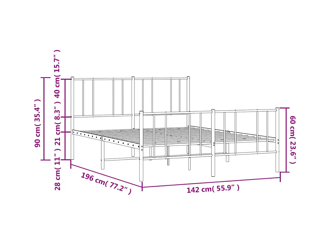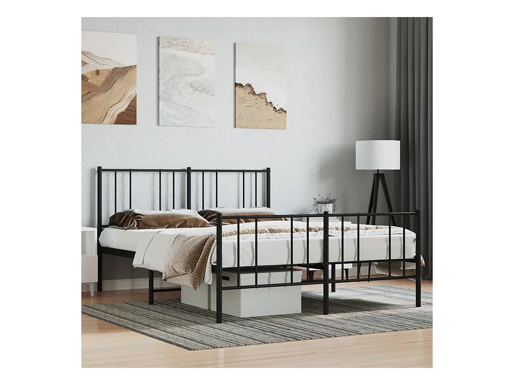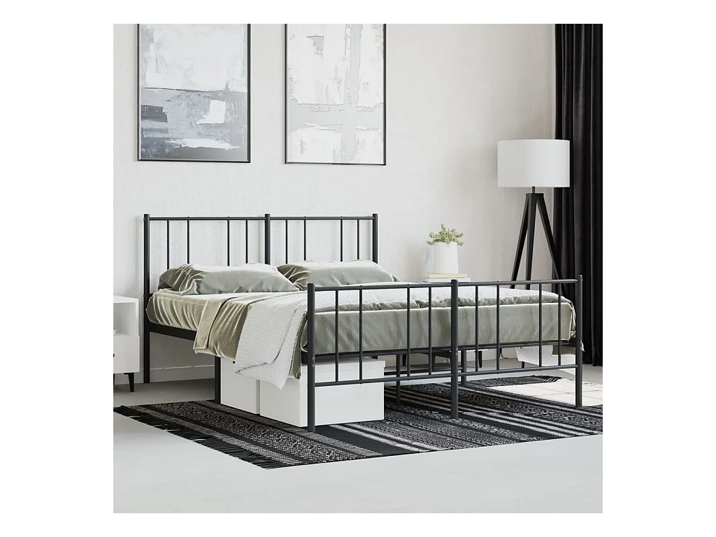 Cadre de lit métal avec tête de lit-pied de lit noir 135x190