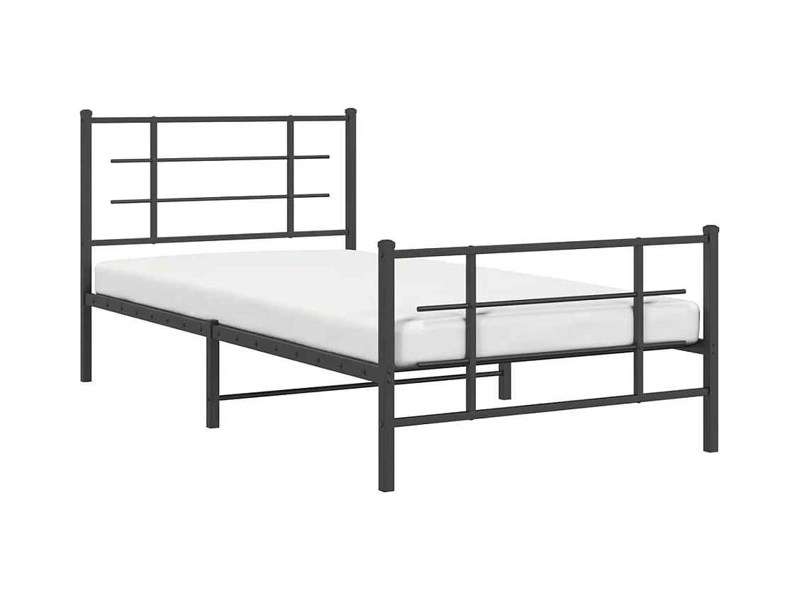 Cadre de lit métal sans matelas avec pied de lit noir 107x203cm