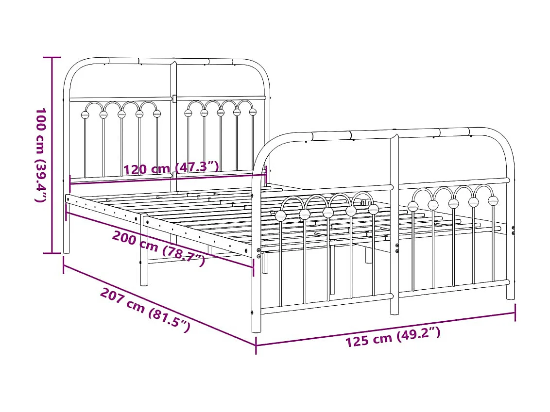 Cadre de lit métal sans matelas avec pied de lit noir 120x200cm