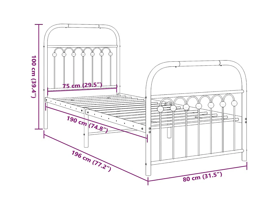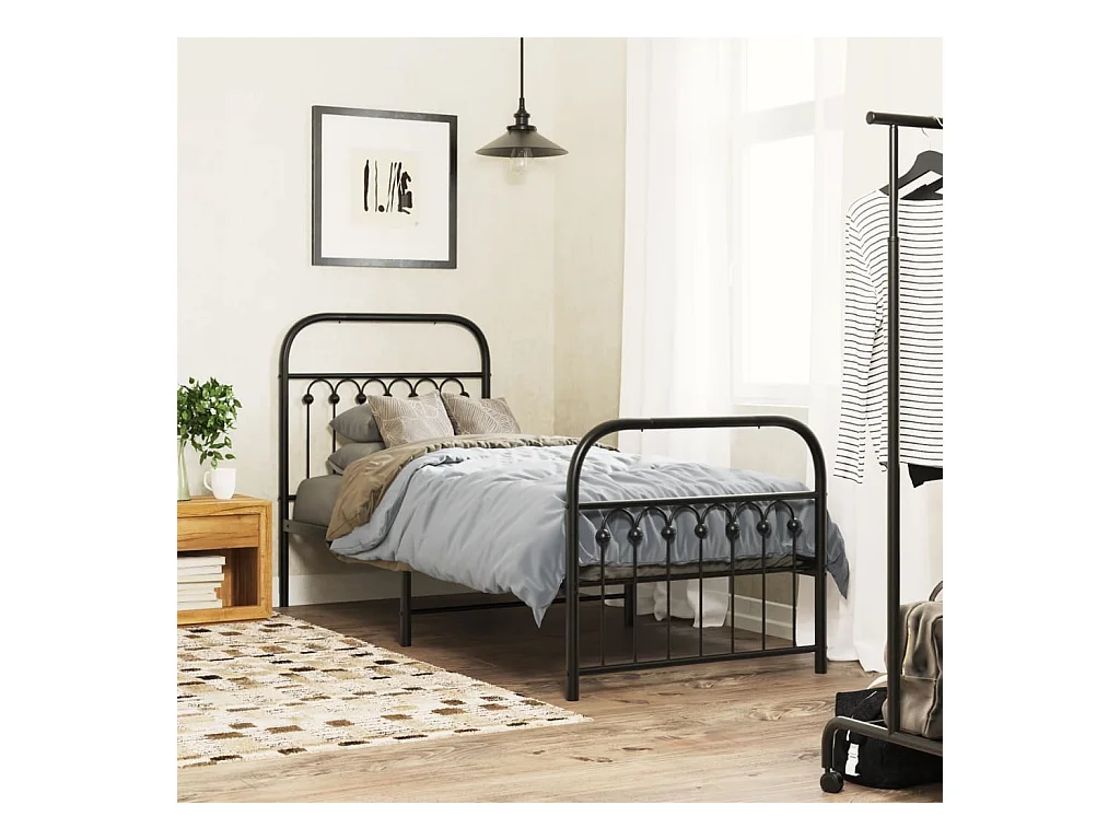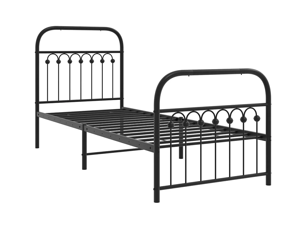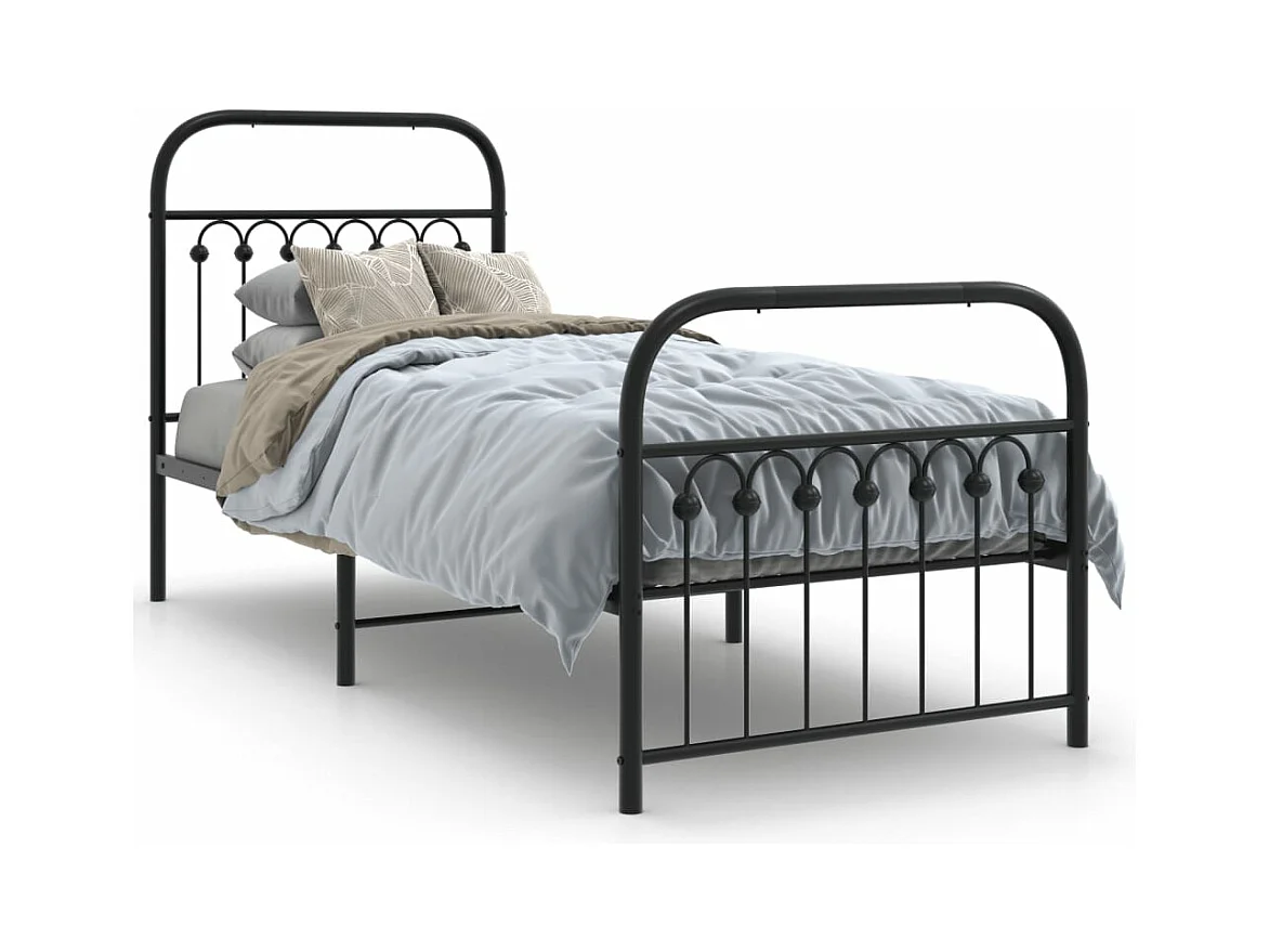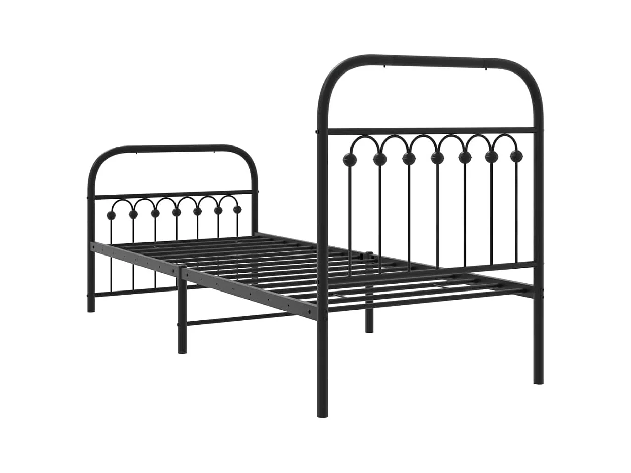 Cadre de lit métal sans matelas avec pied de lit noir 75x190 cm