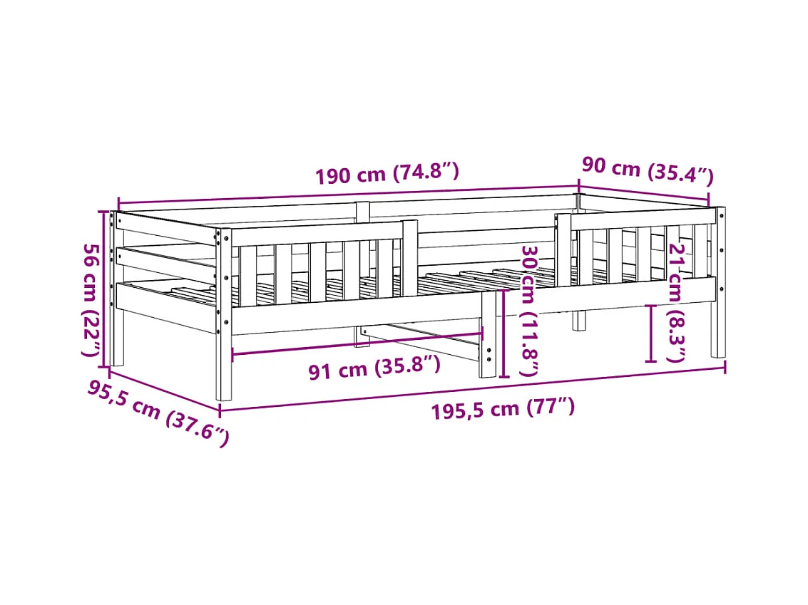 Cadre de lit sans matelas noir 75x190 cm