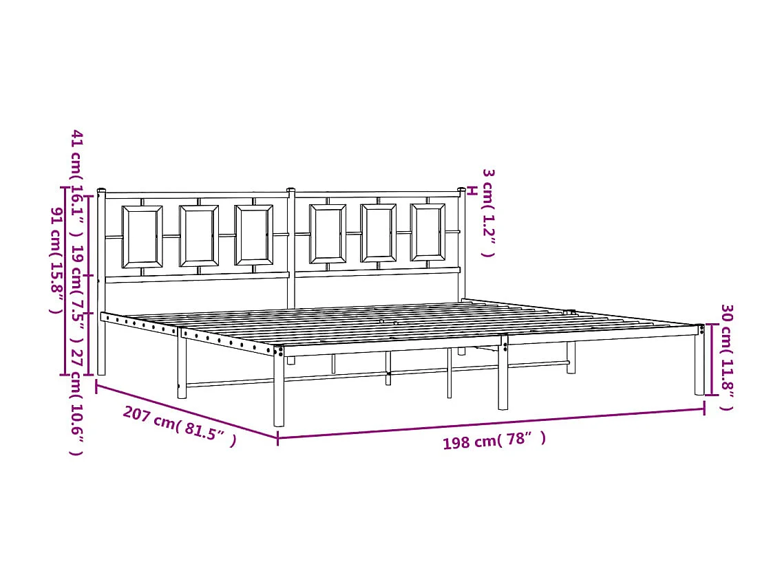 Cadre de lit métal sans matelas avec tête de lit noir 193x203cm