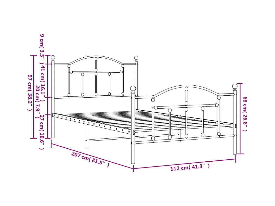 Cadre de lit métal sans matelas et pied de lit blanc 107x203 cm