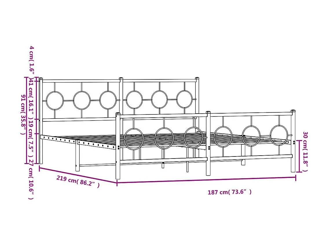 Cadre de lit métal sans matelas et pied de lit blanc 183x213 cm