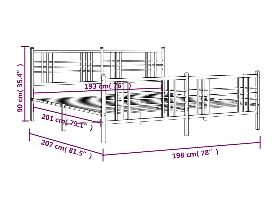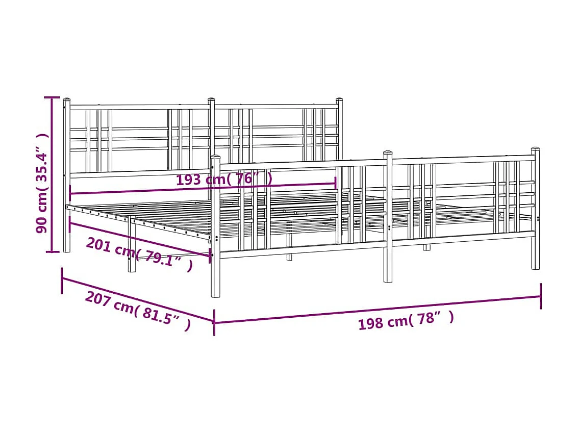 Cadre de lit métal sans matelas et pied de lit blanc 193x203 cm