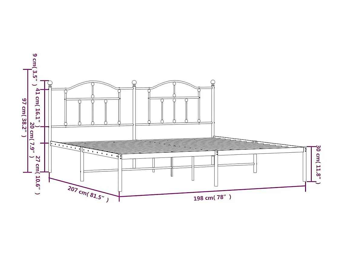 Cadre de lit métal sans matelas et tête de lit blanc 193x203 cm
