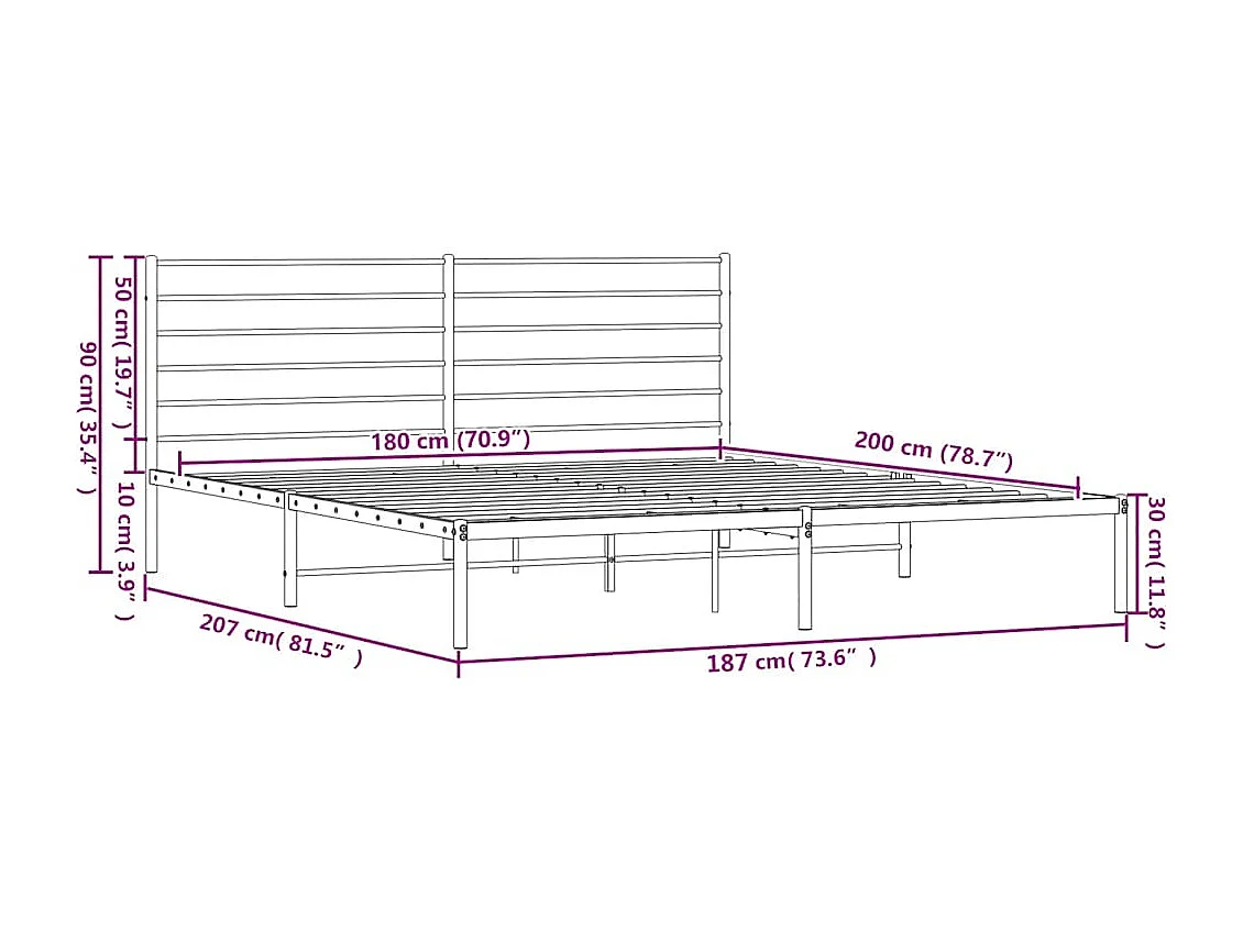 Cadre de lit métal sans matelas et tête de lit noir 180x200 cm