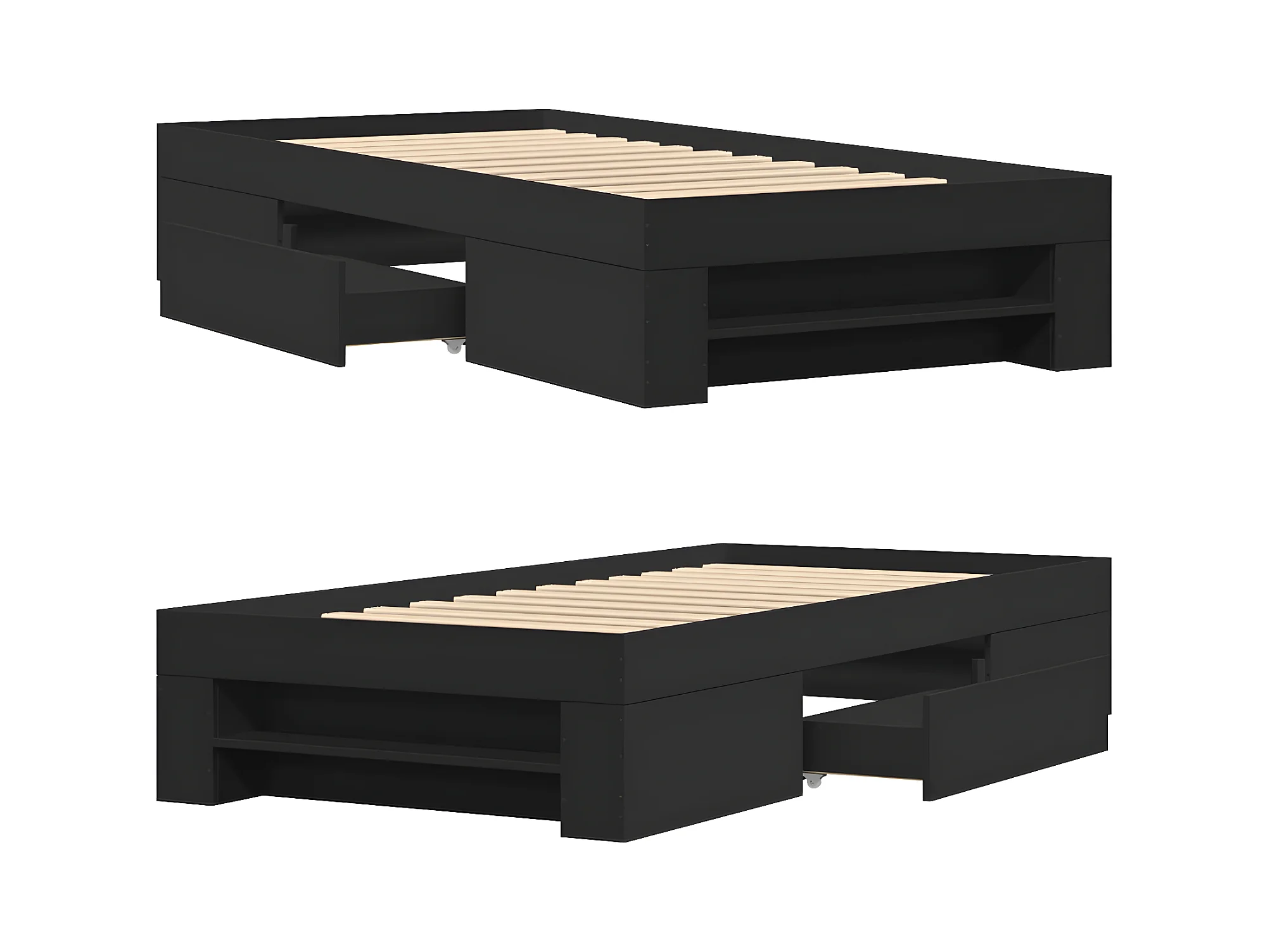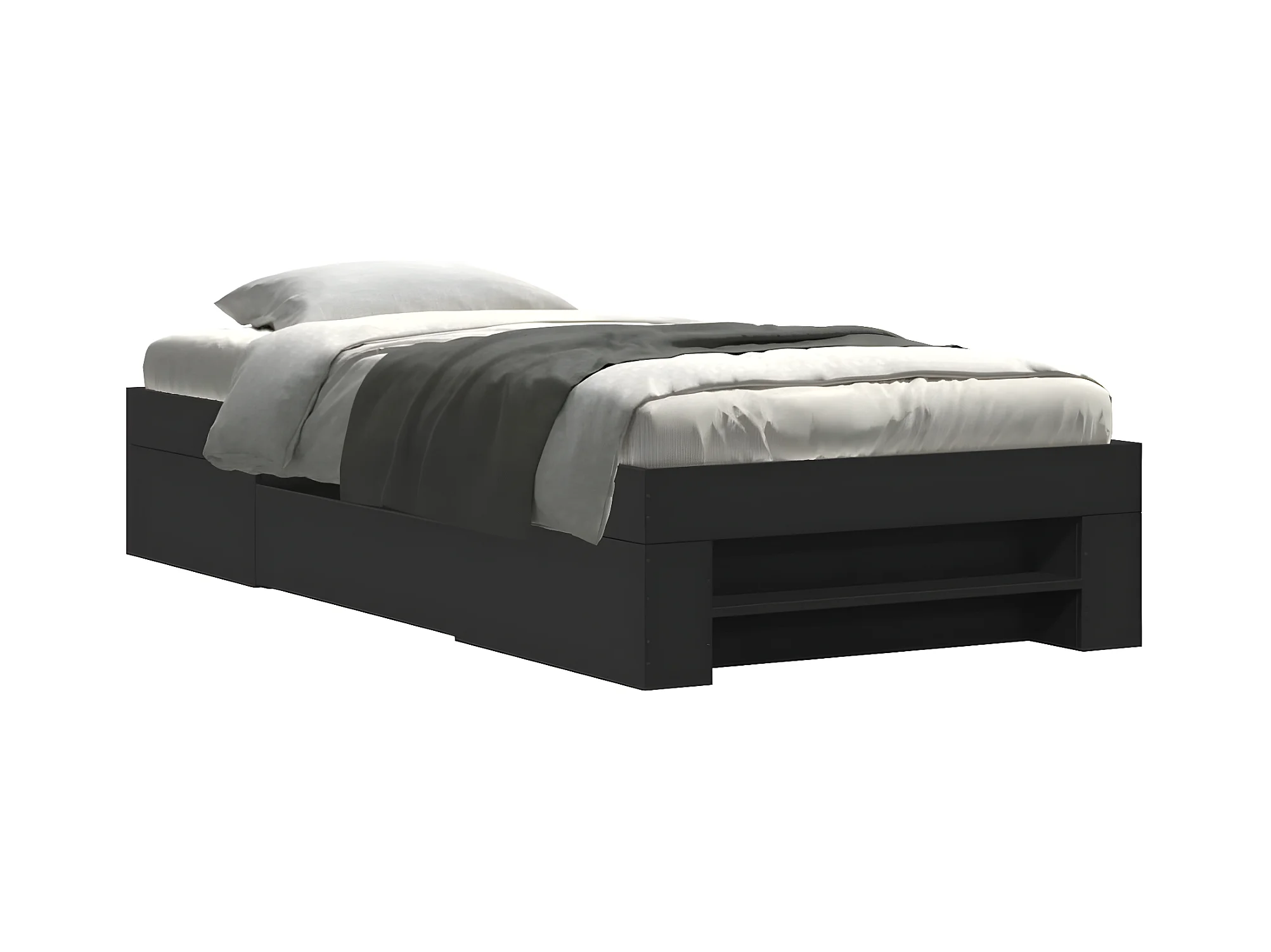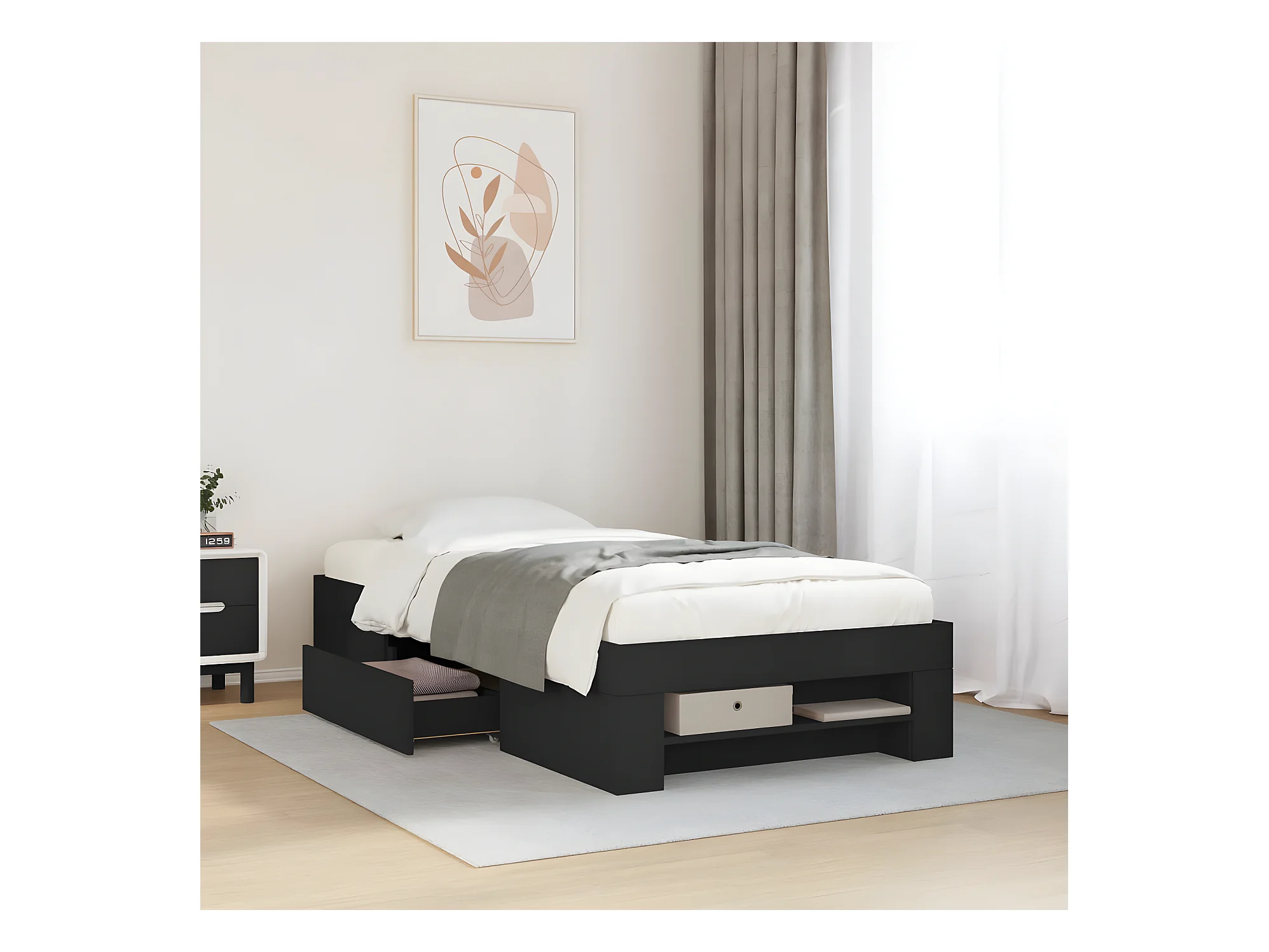 Cadre de lit noir 100x200 cm bois d'ingénierie
