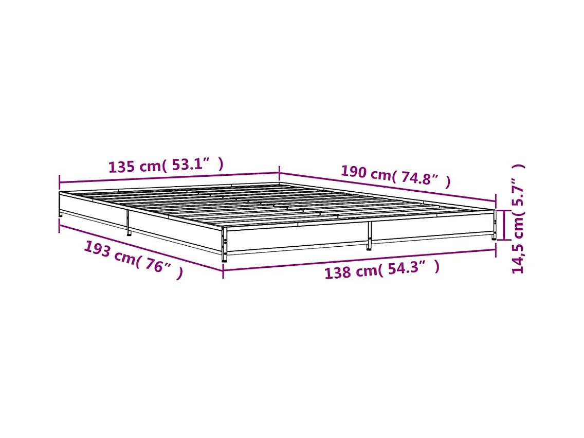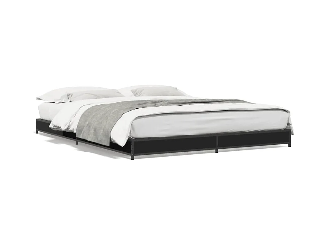 Cadre de lit noir 135x190 bois d'ingénierie et métal