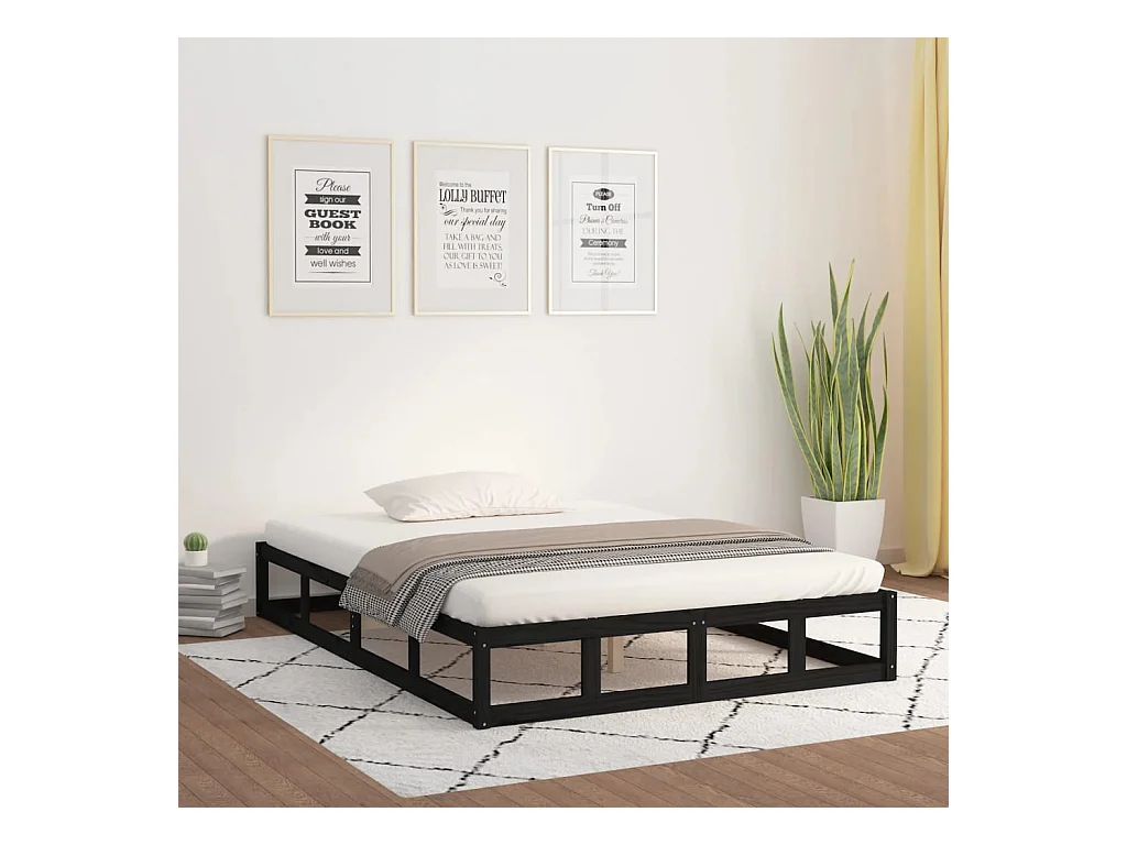 Cadre de lit Noir 140x190 cm Bois massif