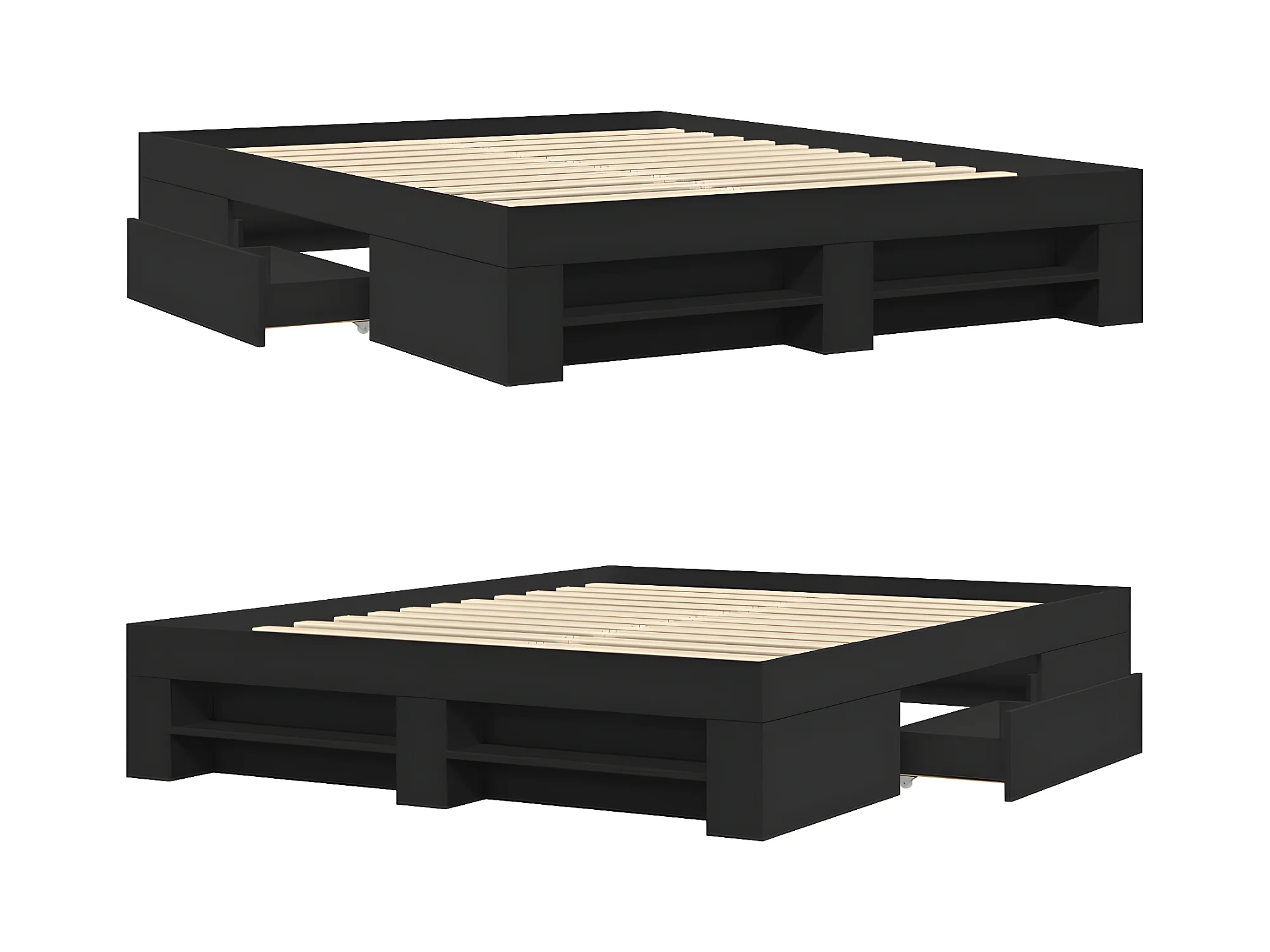 Cadre de lit noir 150x200 cm bois d'ingénierie
