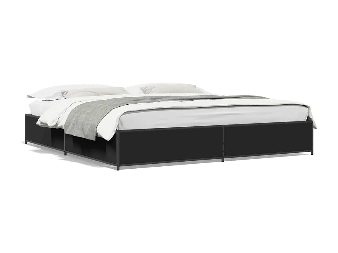 Cadre de lit noir 160x200 cm bois d'ingénierie et métal