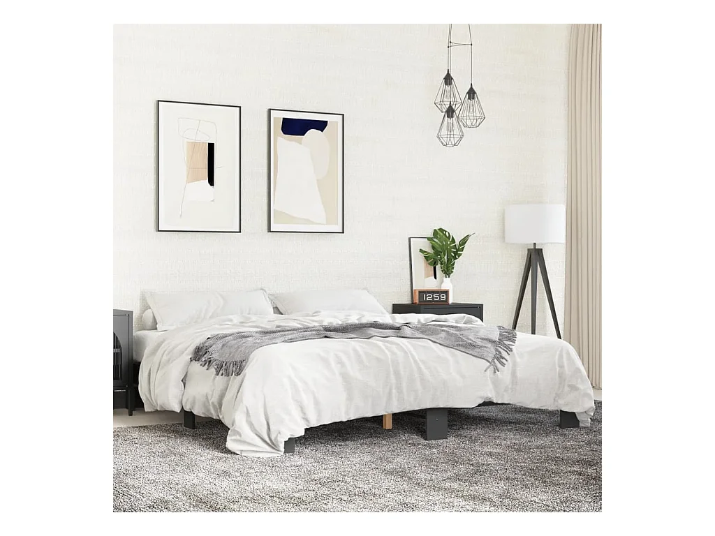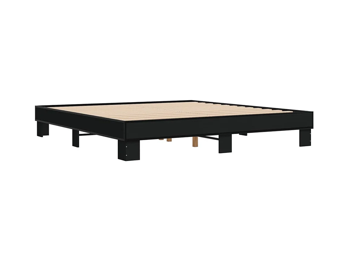 Cadre de lit noir 200x200 bois d'ingénierie et métal