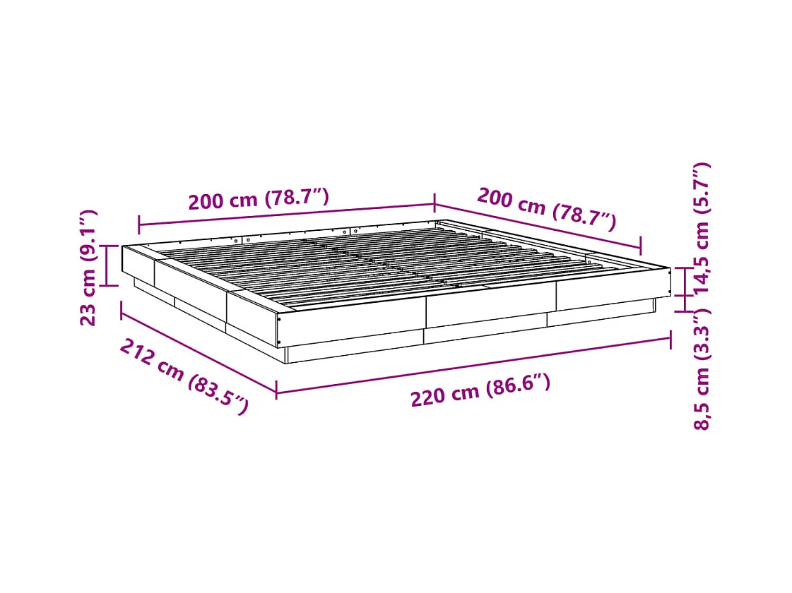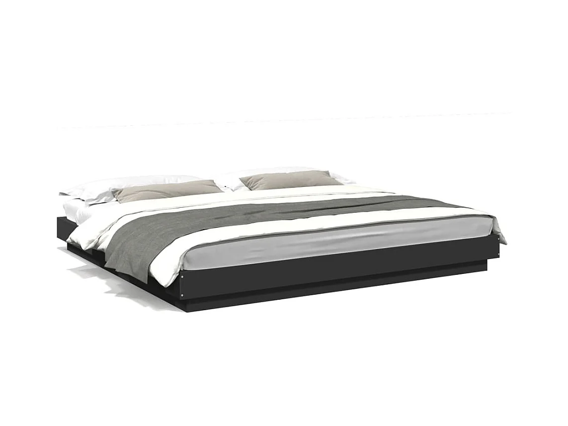 Cadre de lit noir 200x200 cm bois d'ingénierie