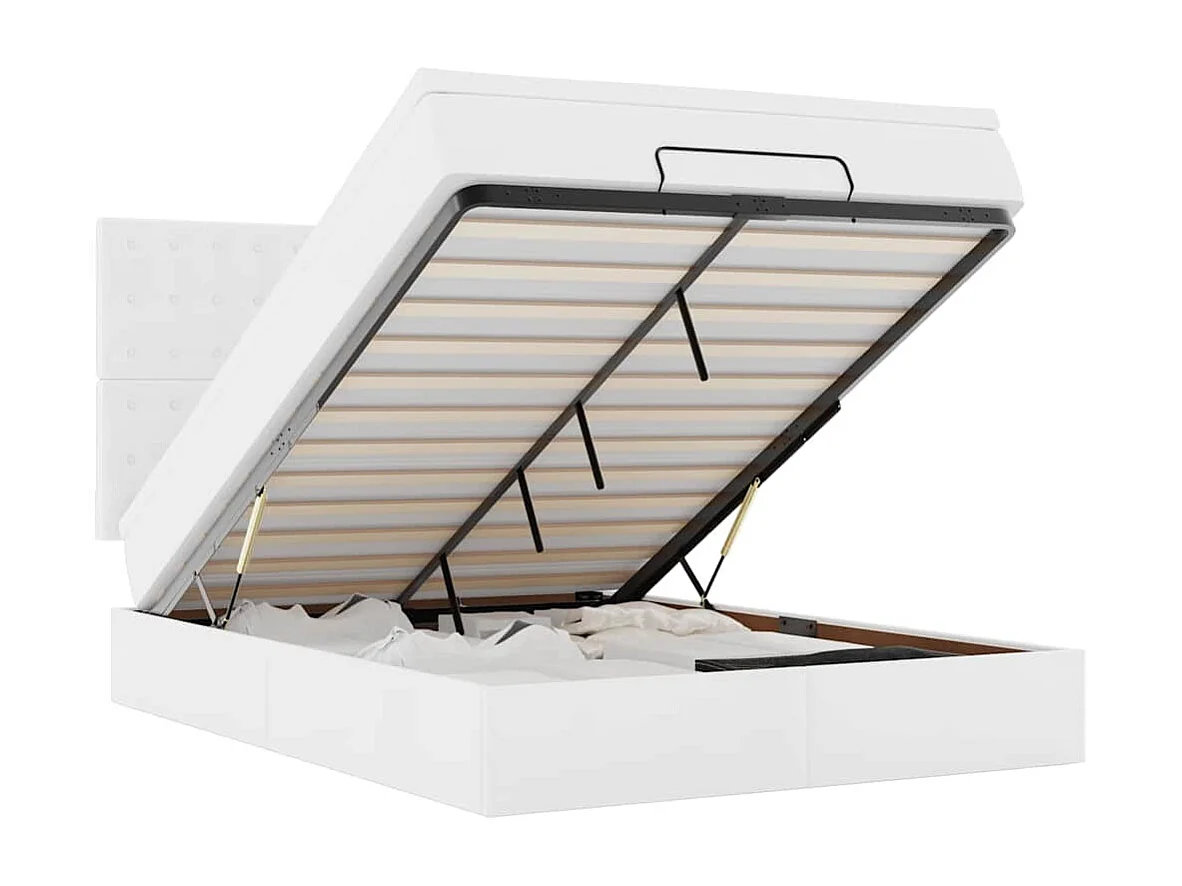 Cadre de lit ottoman avec matelas blanc 140x200 cm similicuir