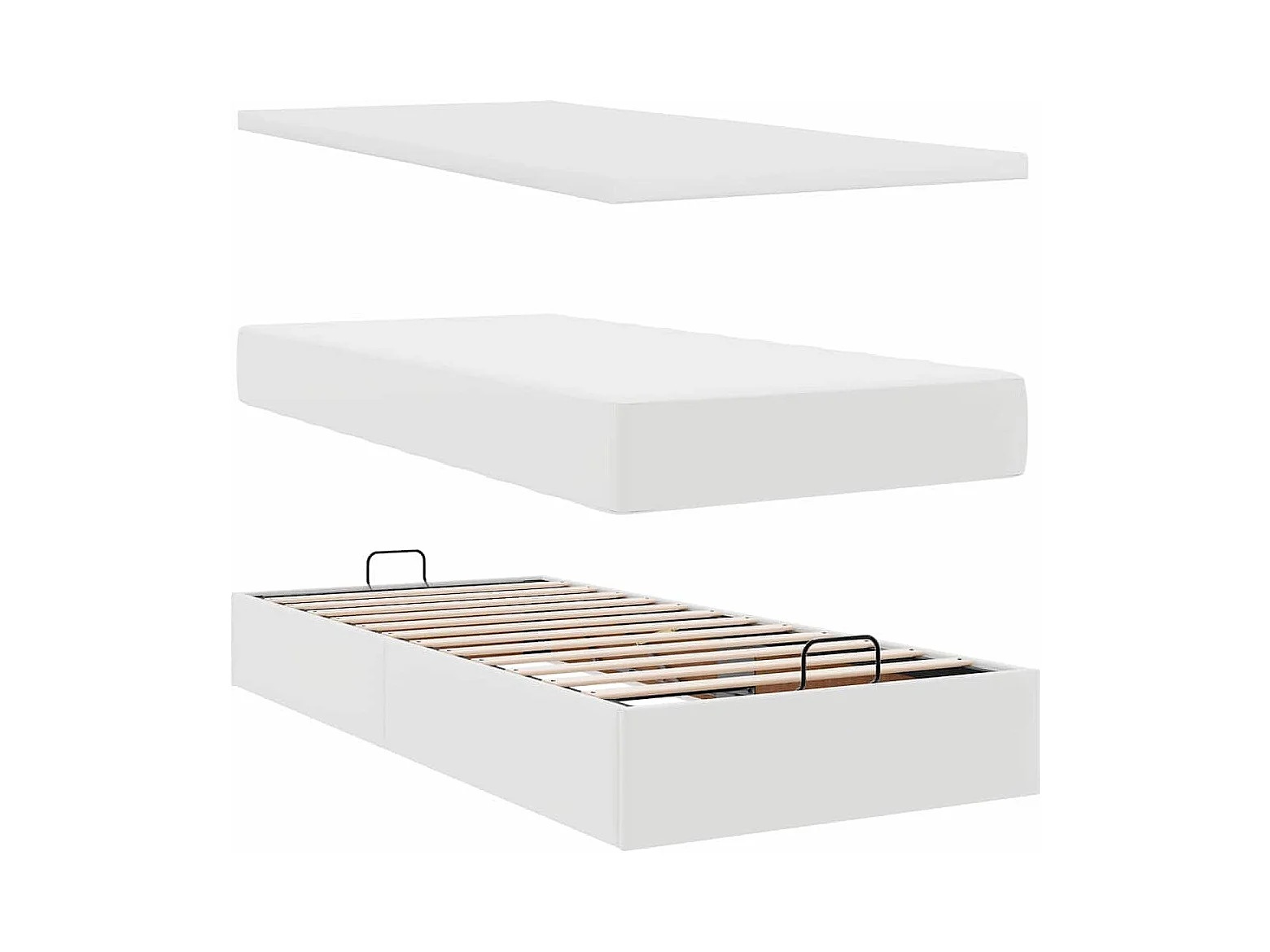 Cadre de lit ottoman avec matelas blanc 90x200 cm similicuir