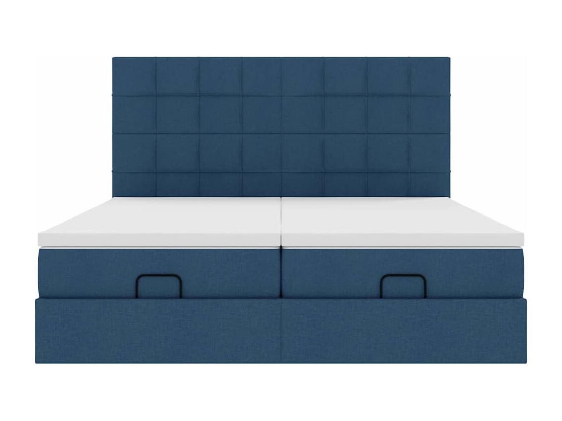 Cadre de lit ottoman avec matelas bleu 160x200 cm tissu