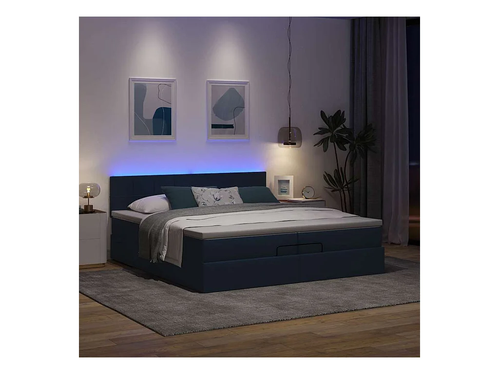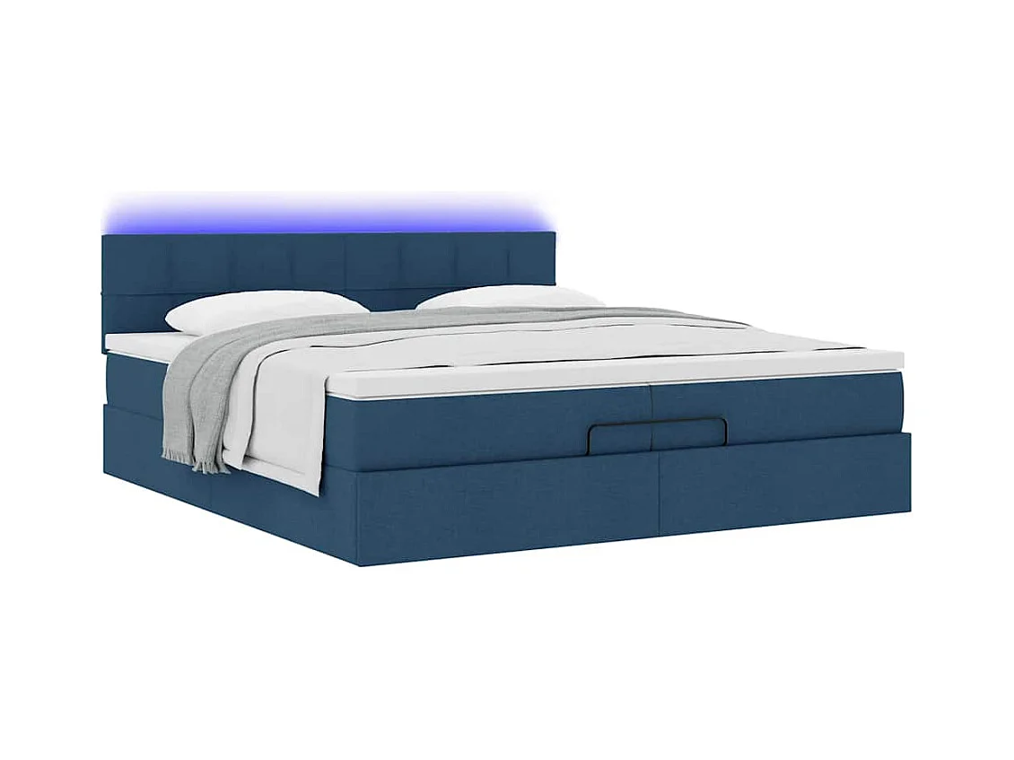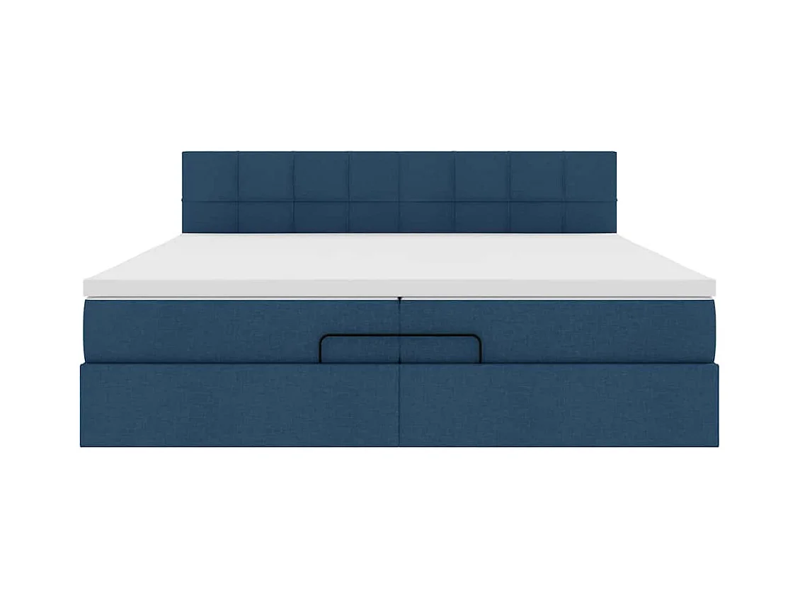 Cadre de lit ottoman avec matelas bleu 200x200cm tissu