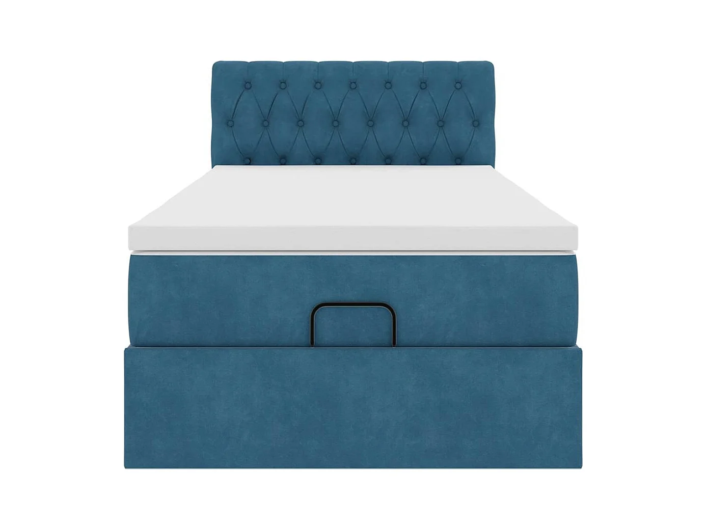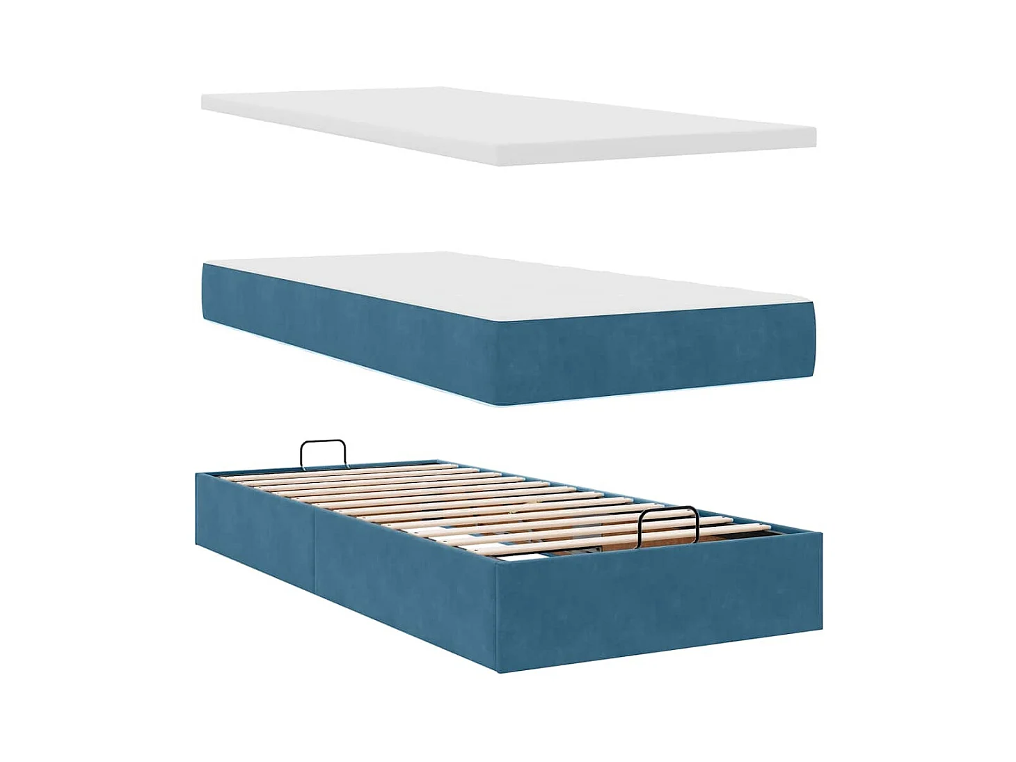Cadre de lit ottoman avec matelas bleu foncé 100x200 cm velours