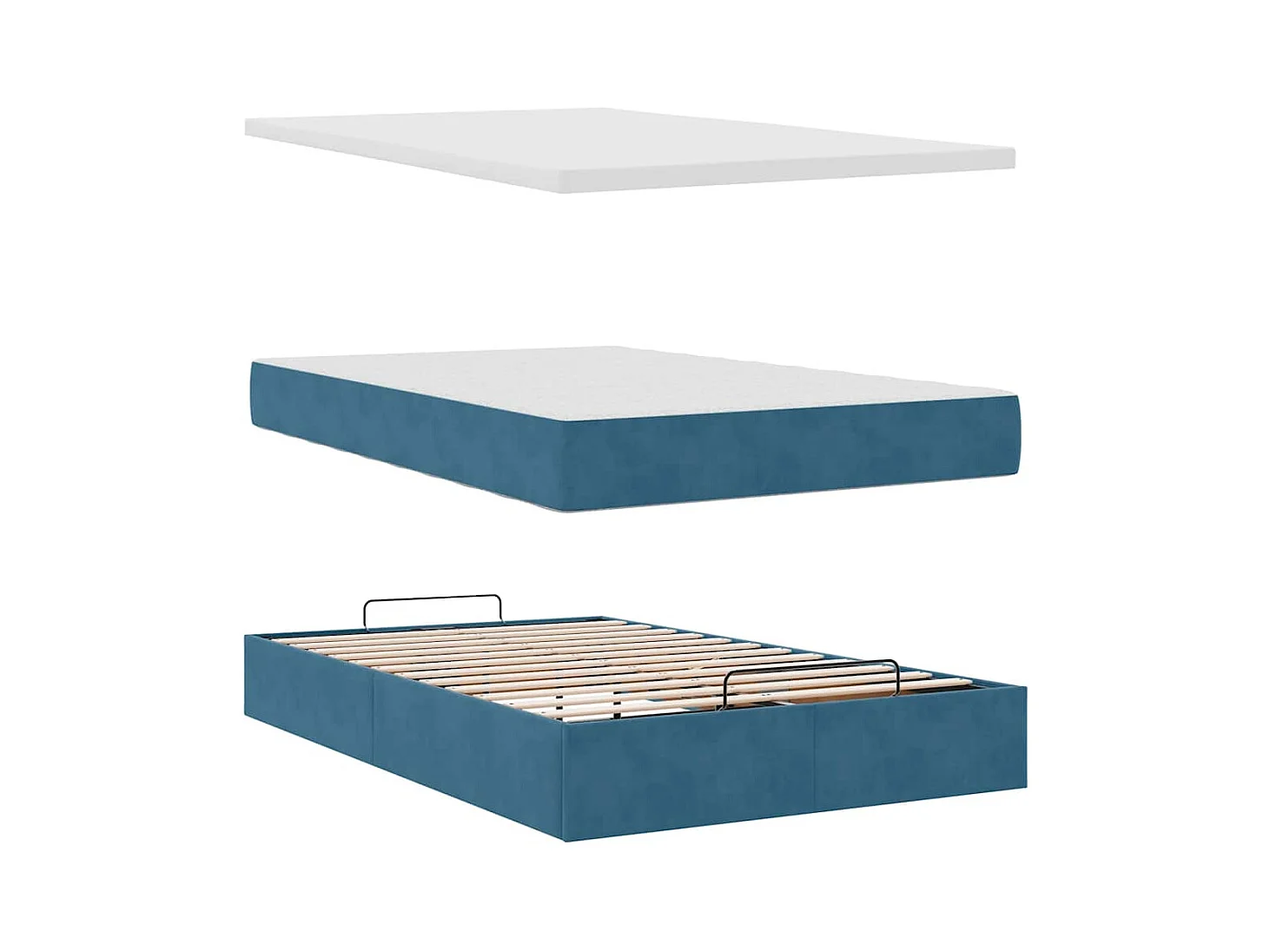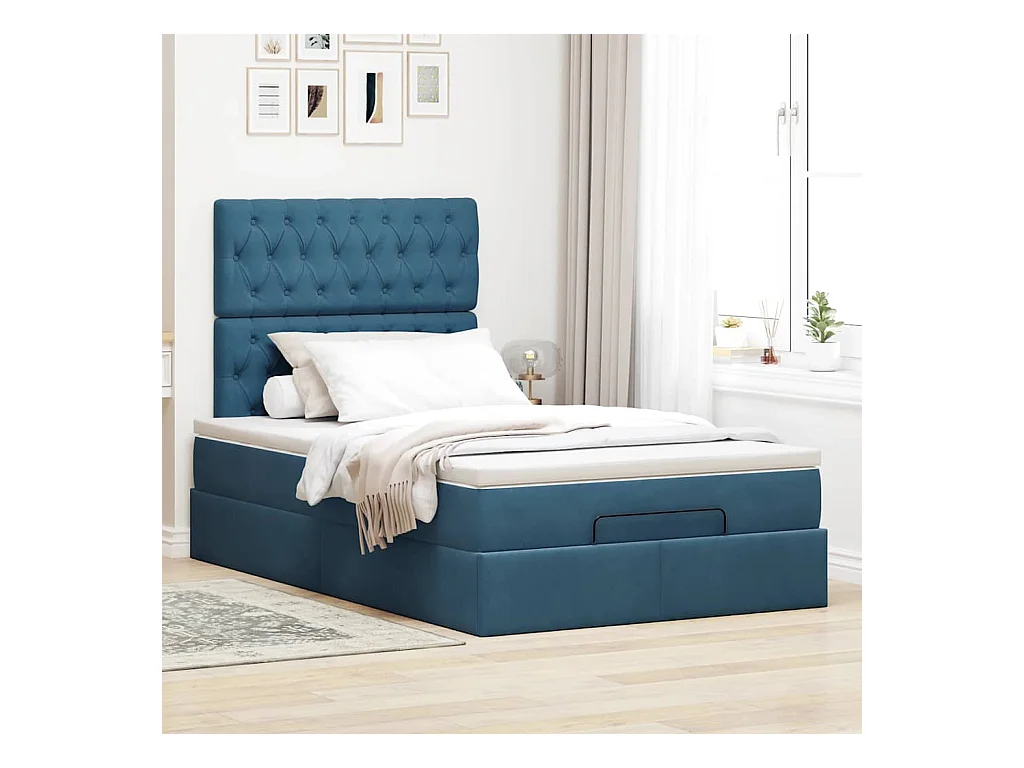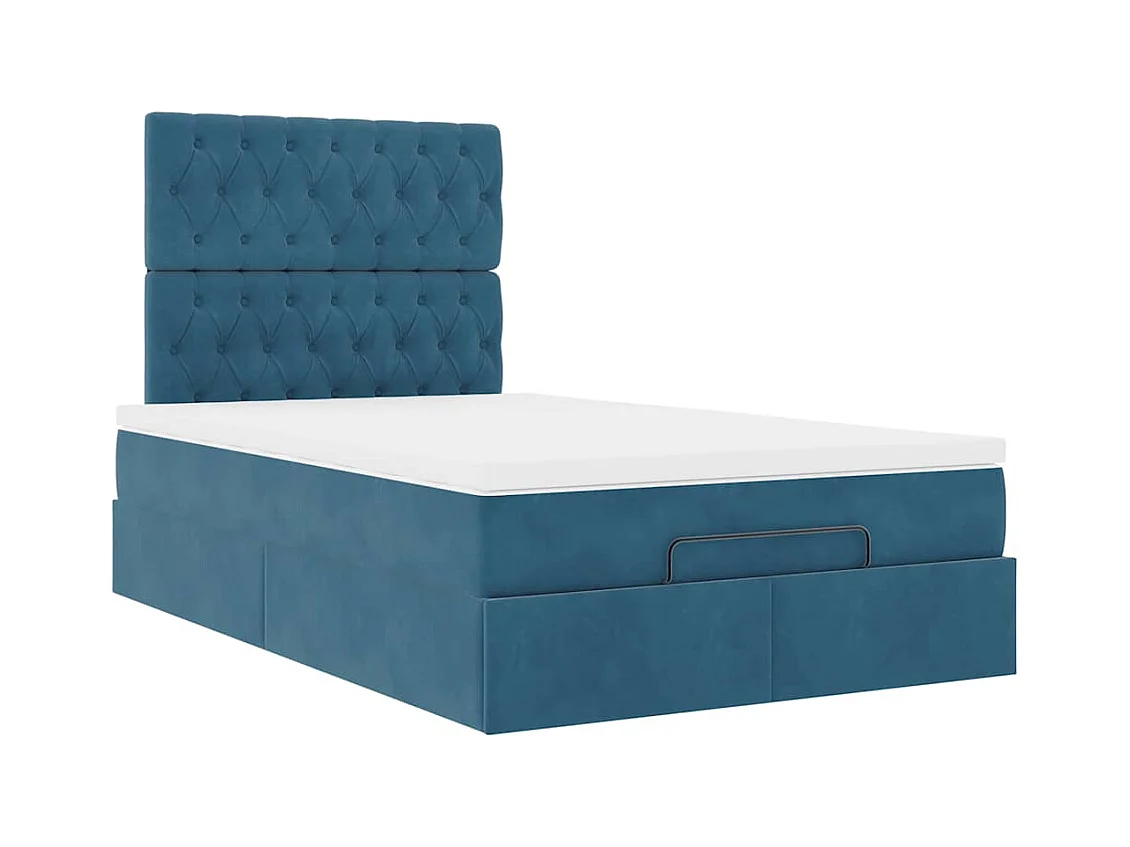 Cadre de lit ottoman avec matelas bleu foncé 120x190 cm velours