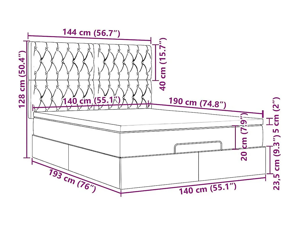 Cadre de lit ottoman avec matelas bleu foncé 140x190 cm velours