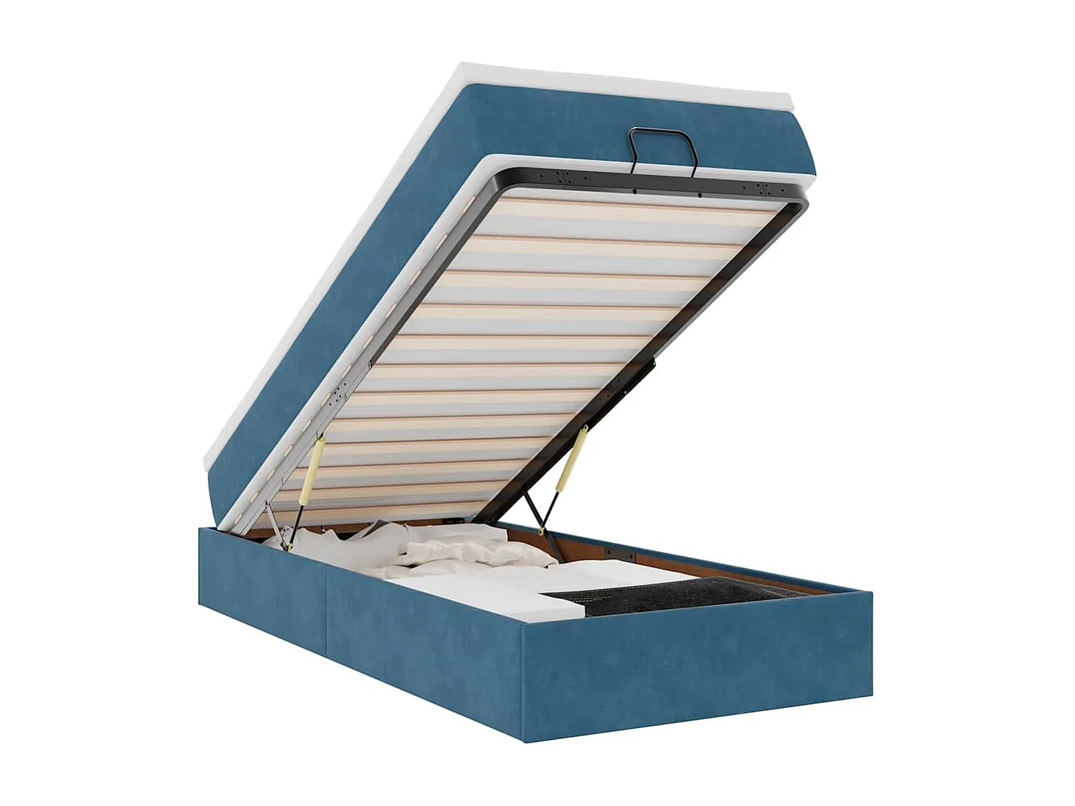 Cadre de lit ottoman avec matelas bleu foncé 90x190 cm velours