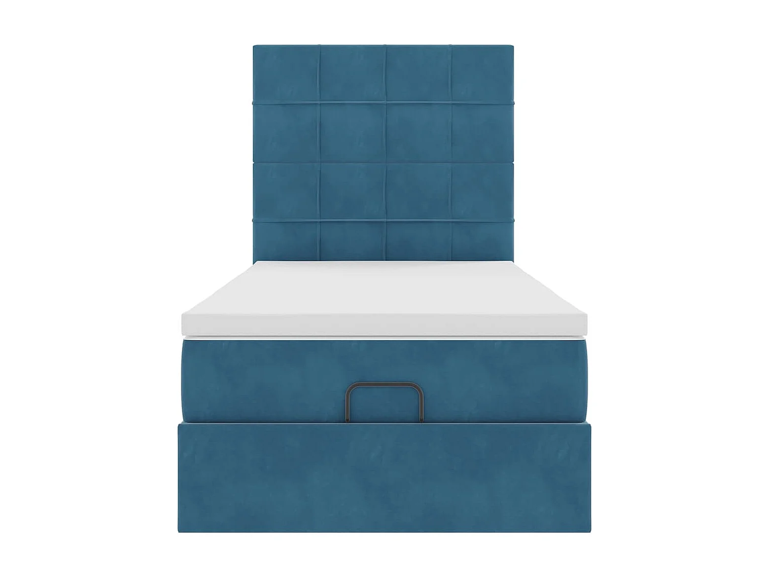 Cadre de lit ottoman avec matelas bleu foncé 90x190 cm velours