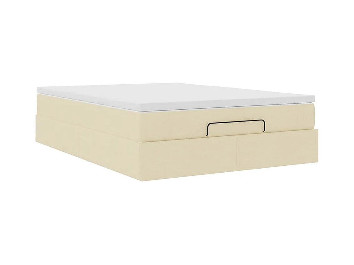 Cadre de lit ottoman avec matelas crème 140x200 cm tissu