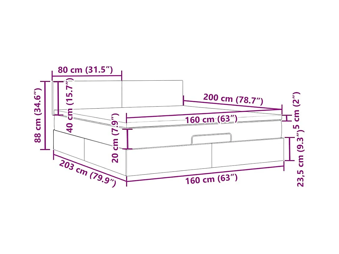 Cadre de lit ottoman avec matelas crème 160x200 cm tissu