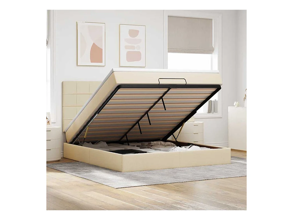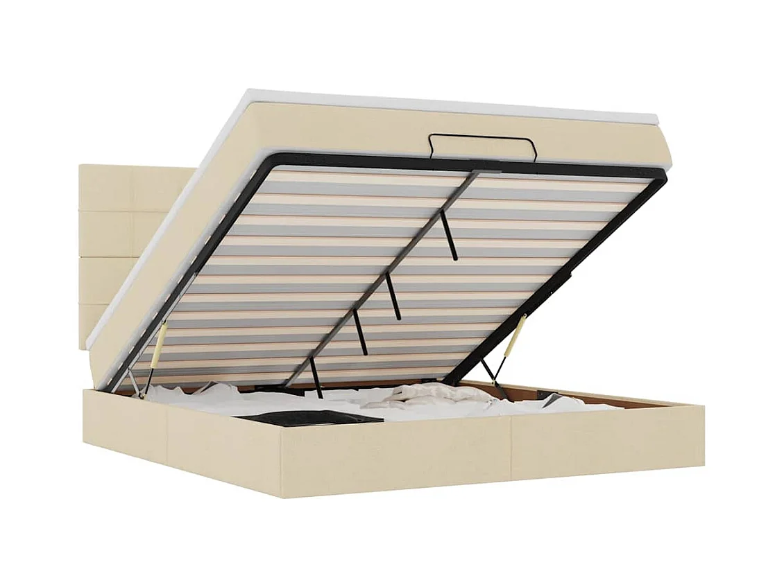Cadre de lit ottoman avec matelas crème 160x200 cm tissu