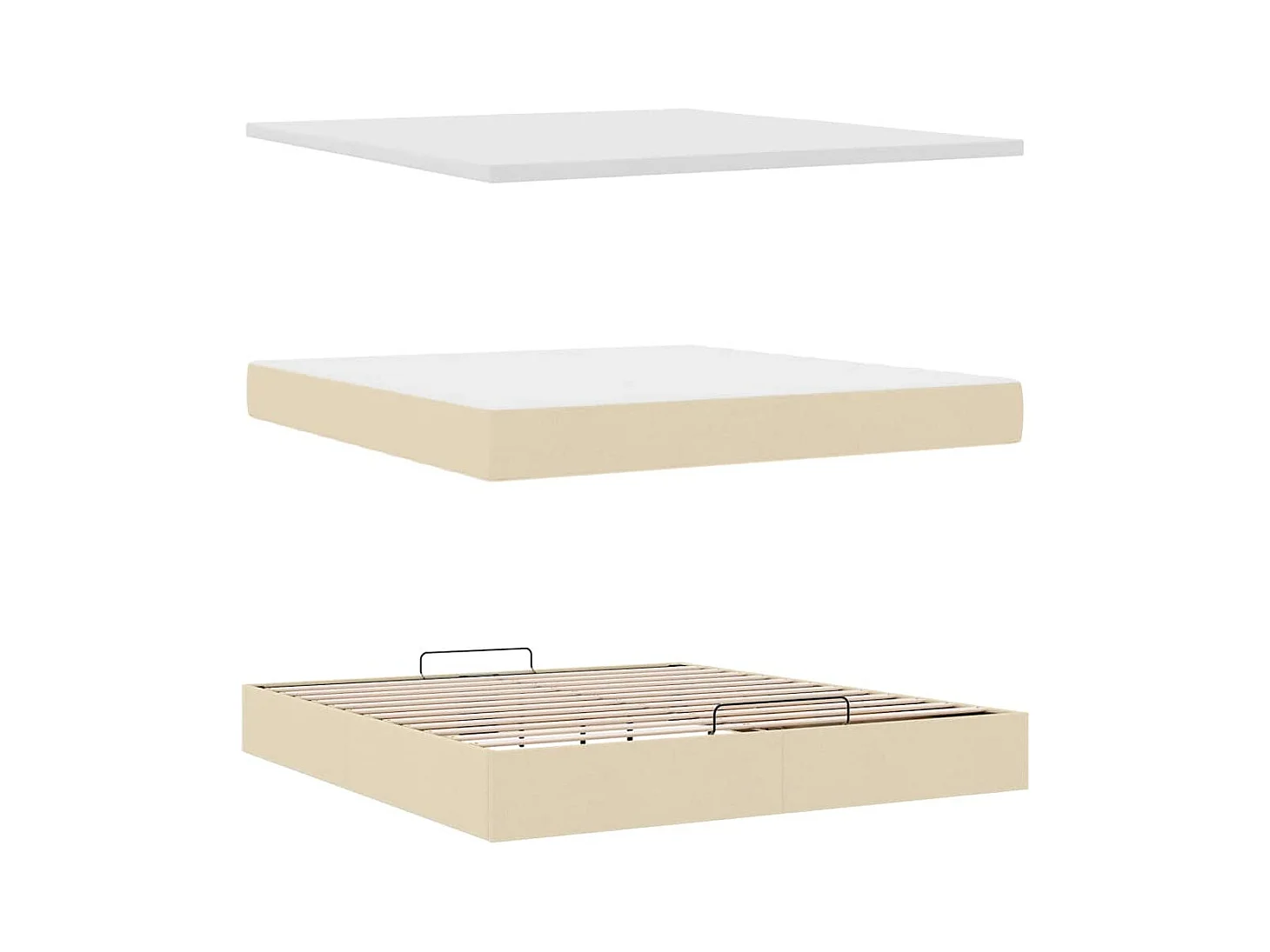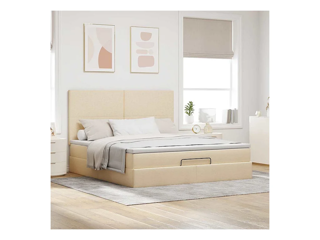 Cadre de lit ottoman avec matelas crème 180x200 cm tissu