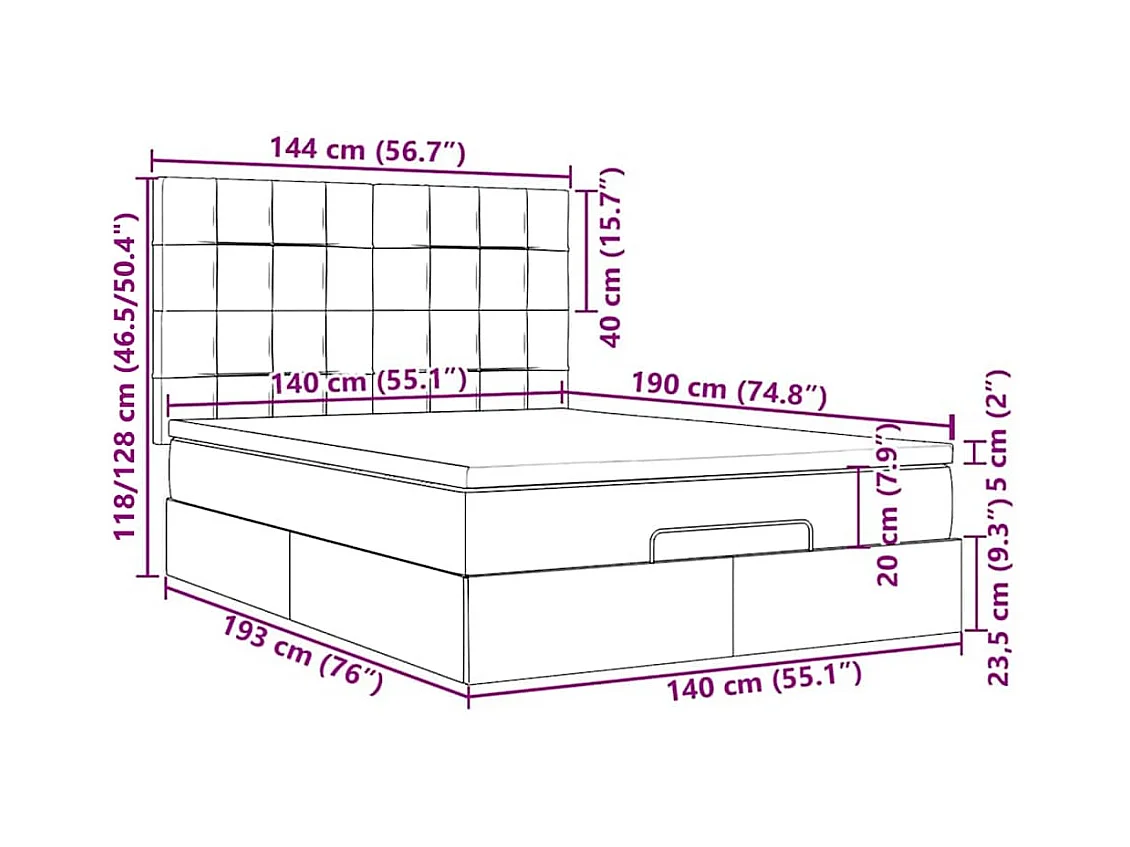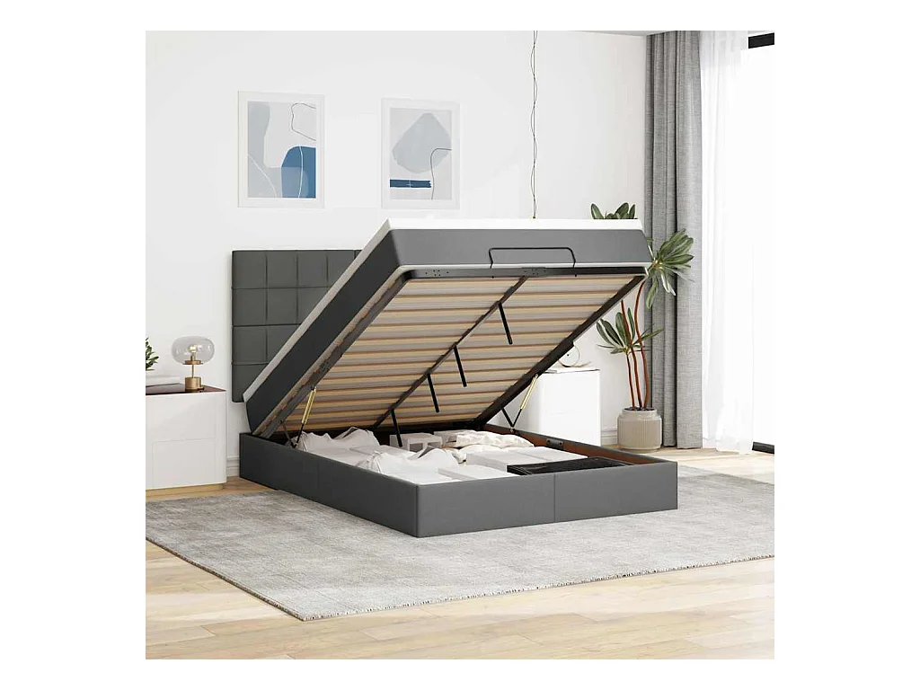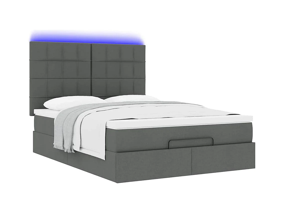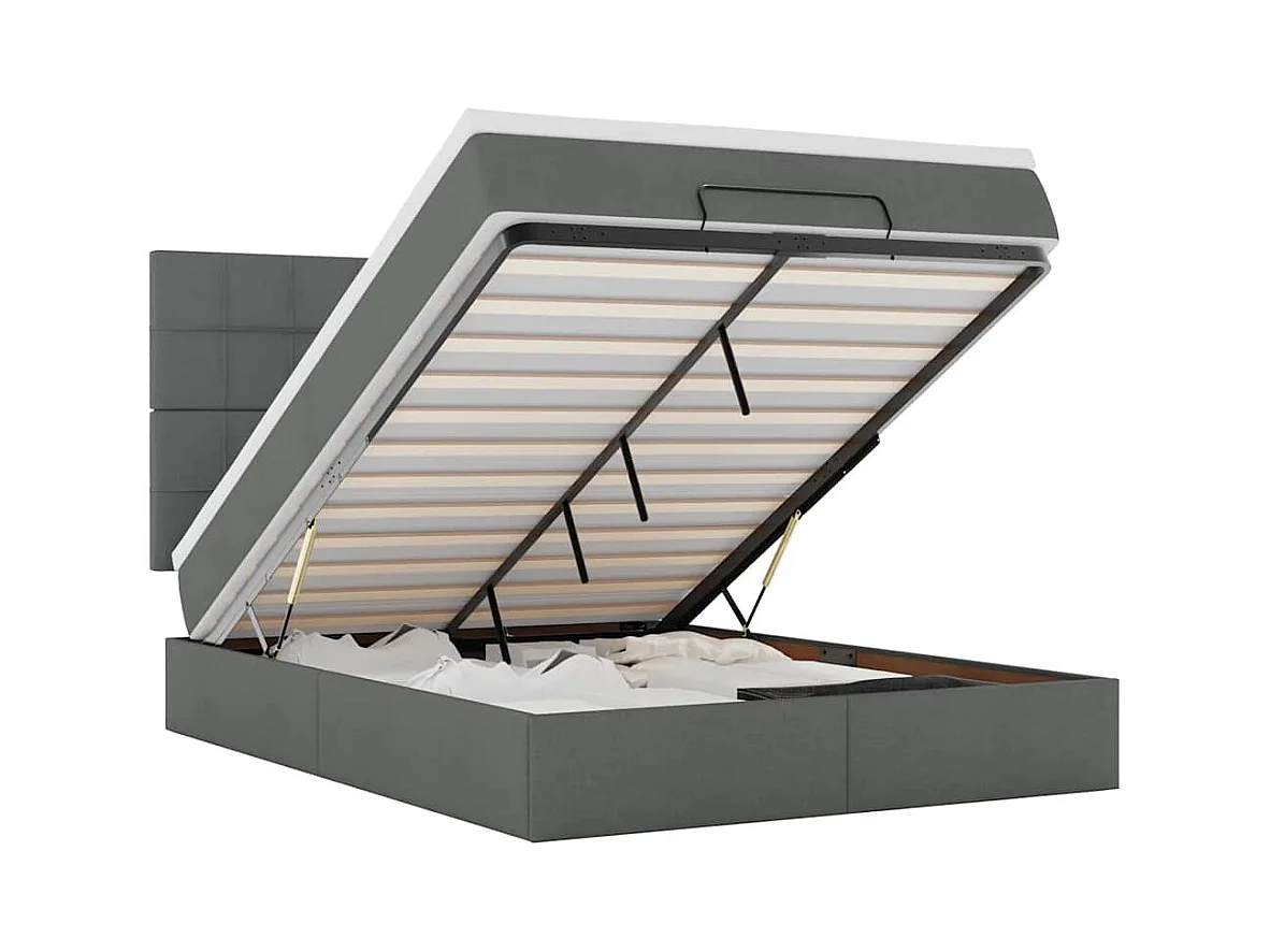 Cadre de lit ottoman avec matelas gris foncé 140x190 cm tissu