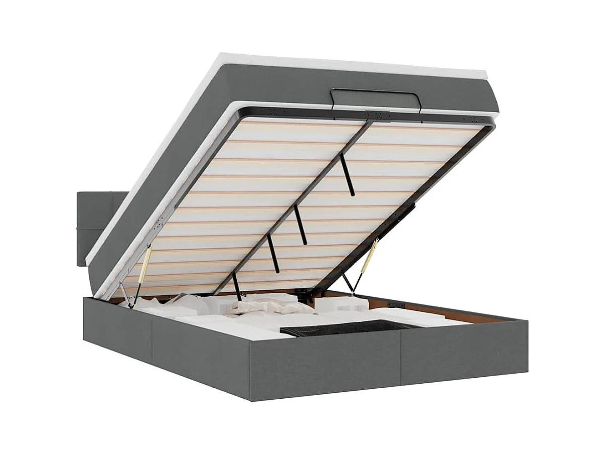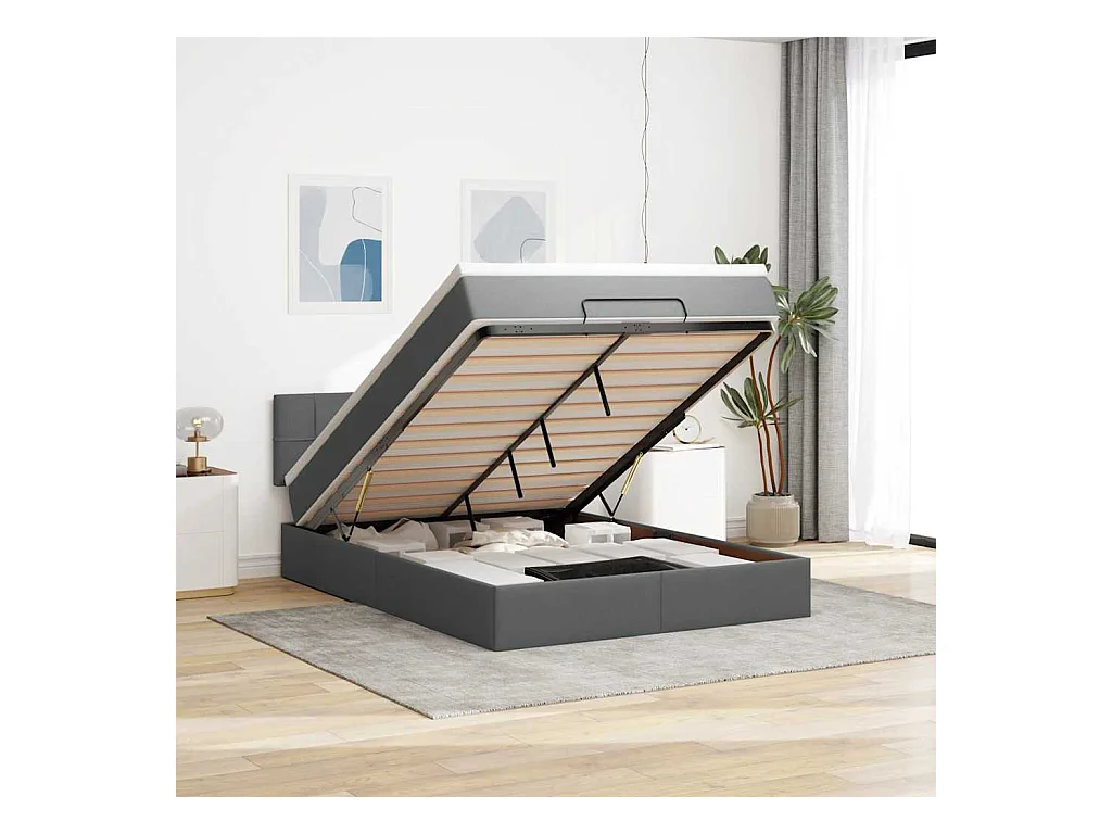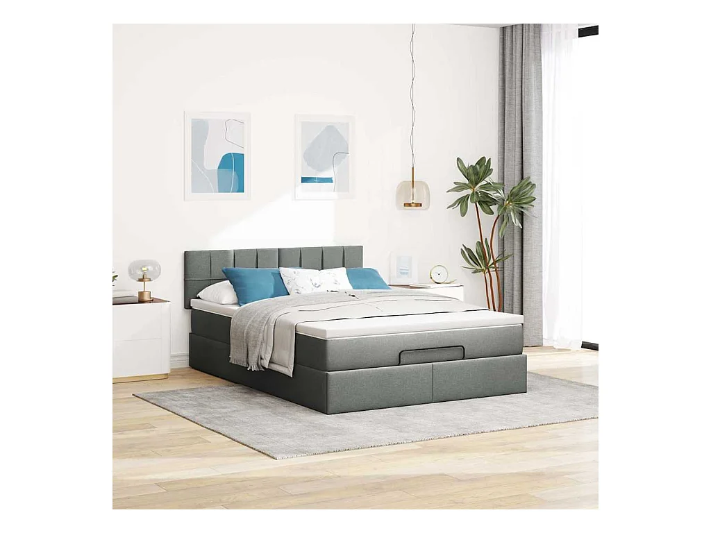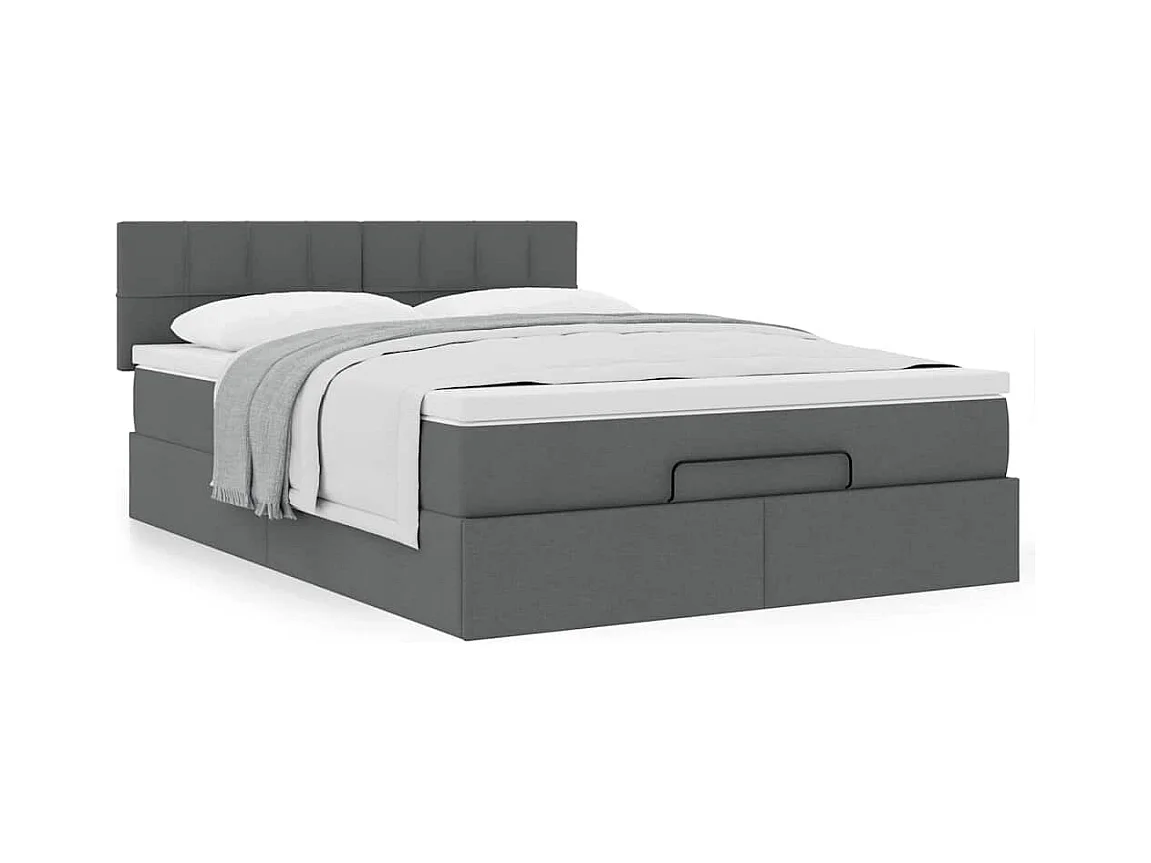 Cadre de lit ottoman avec matelas gris foncé 140x190 cm tissu