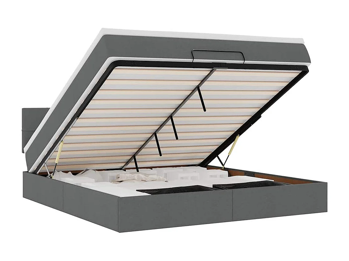 Cadre de lit ottoman avec matelas gris foncé 180x200 cm tissu