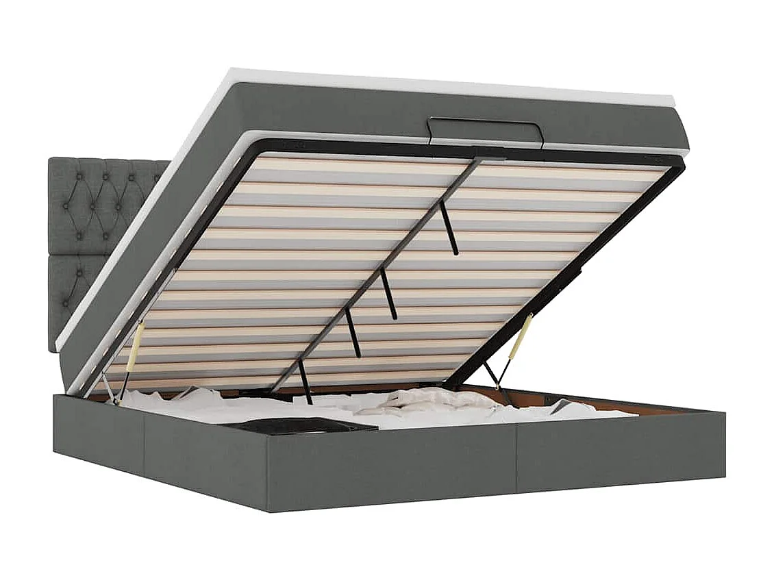 Cadre de lit ottoman avec matelas gris foncé 180x200 cm tissu