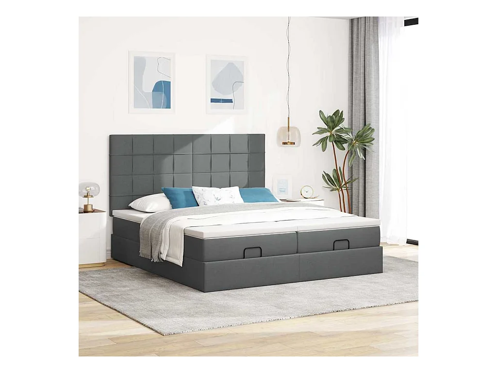 Cadre de lit ottoman avec matelas gris foncé 180x200cm tissu