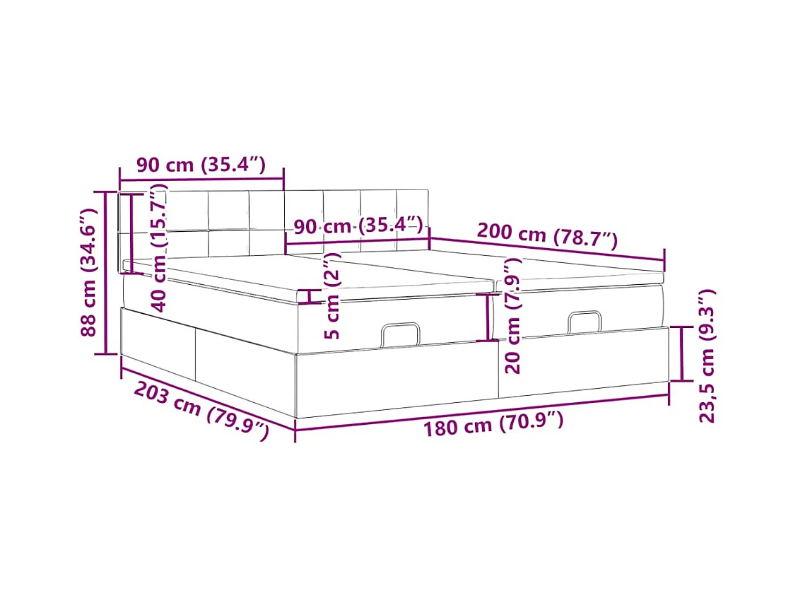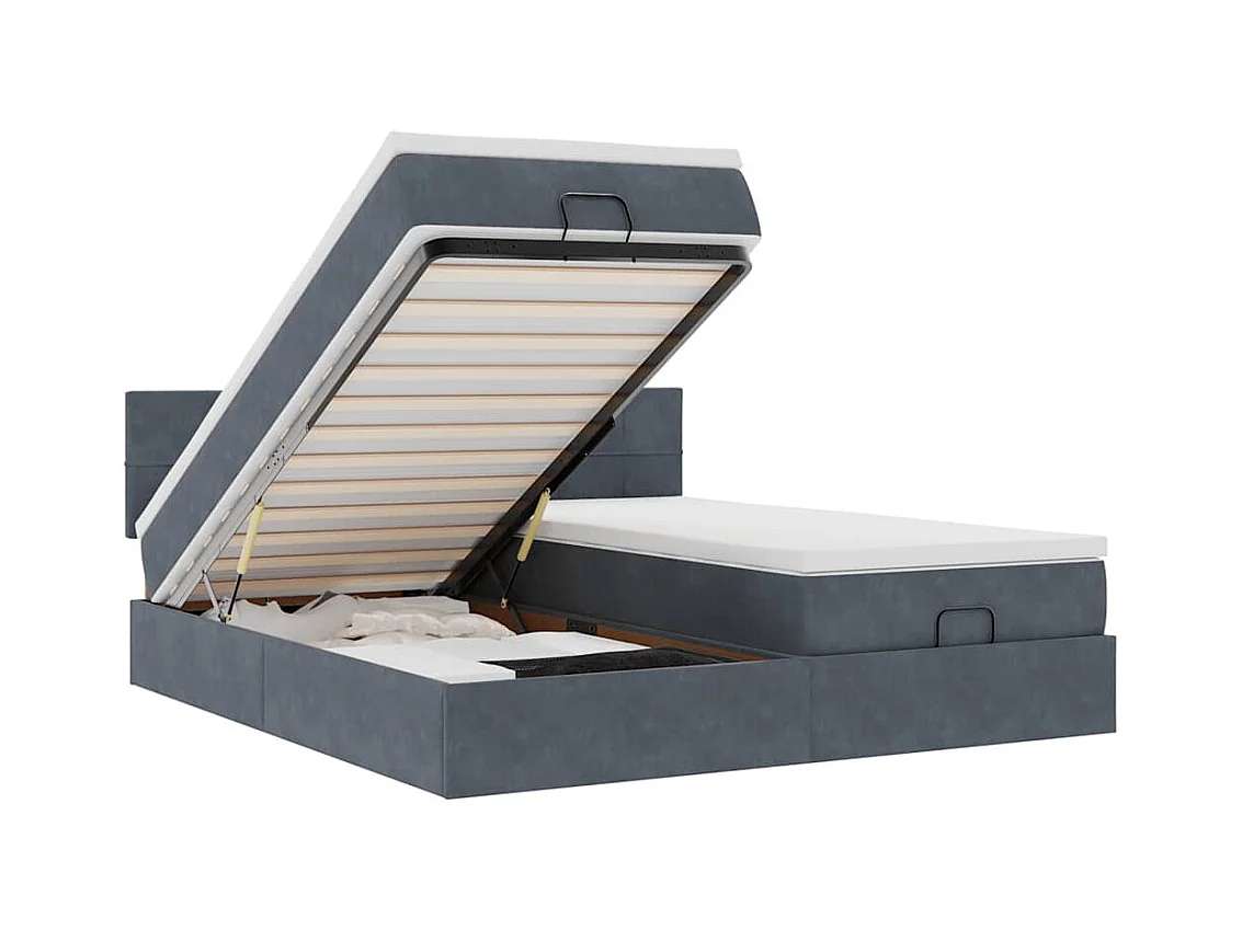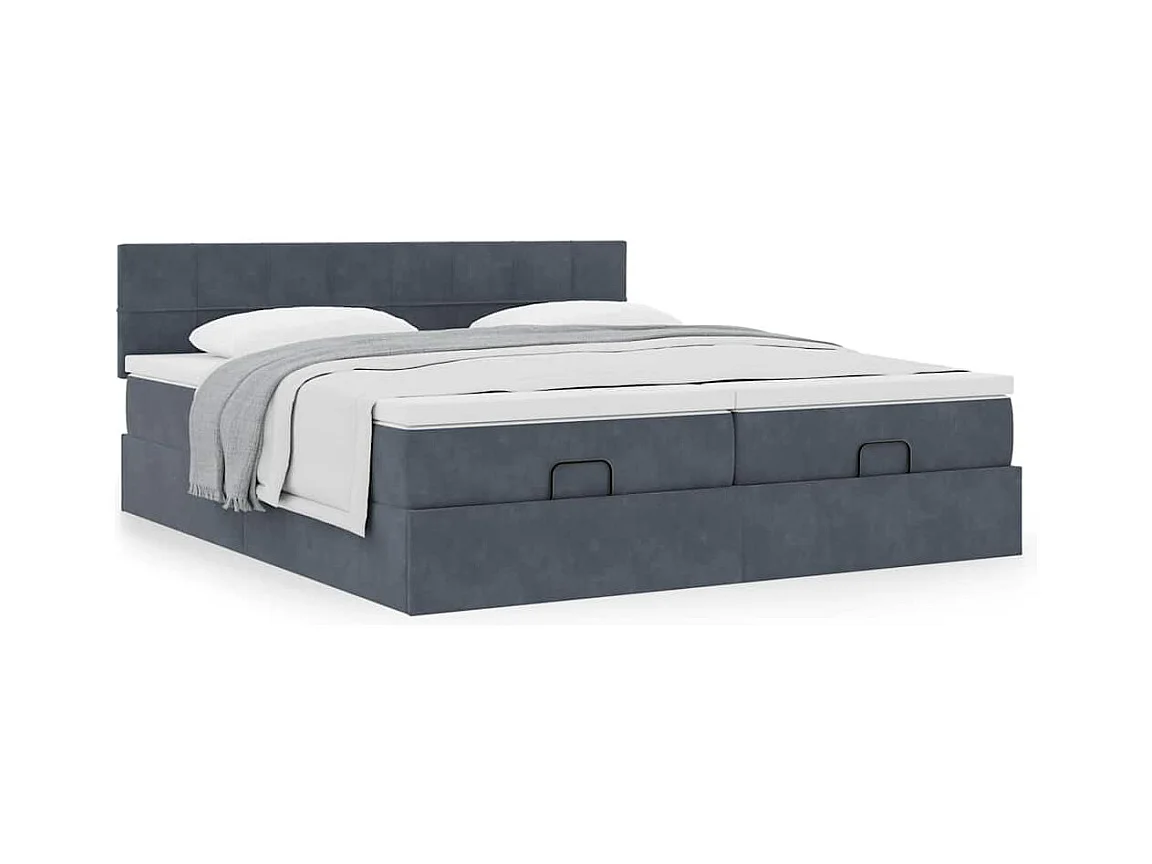 Cadre de lit ottoman avec matelas gris foncé 180x200cm velours