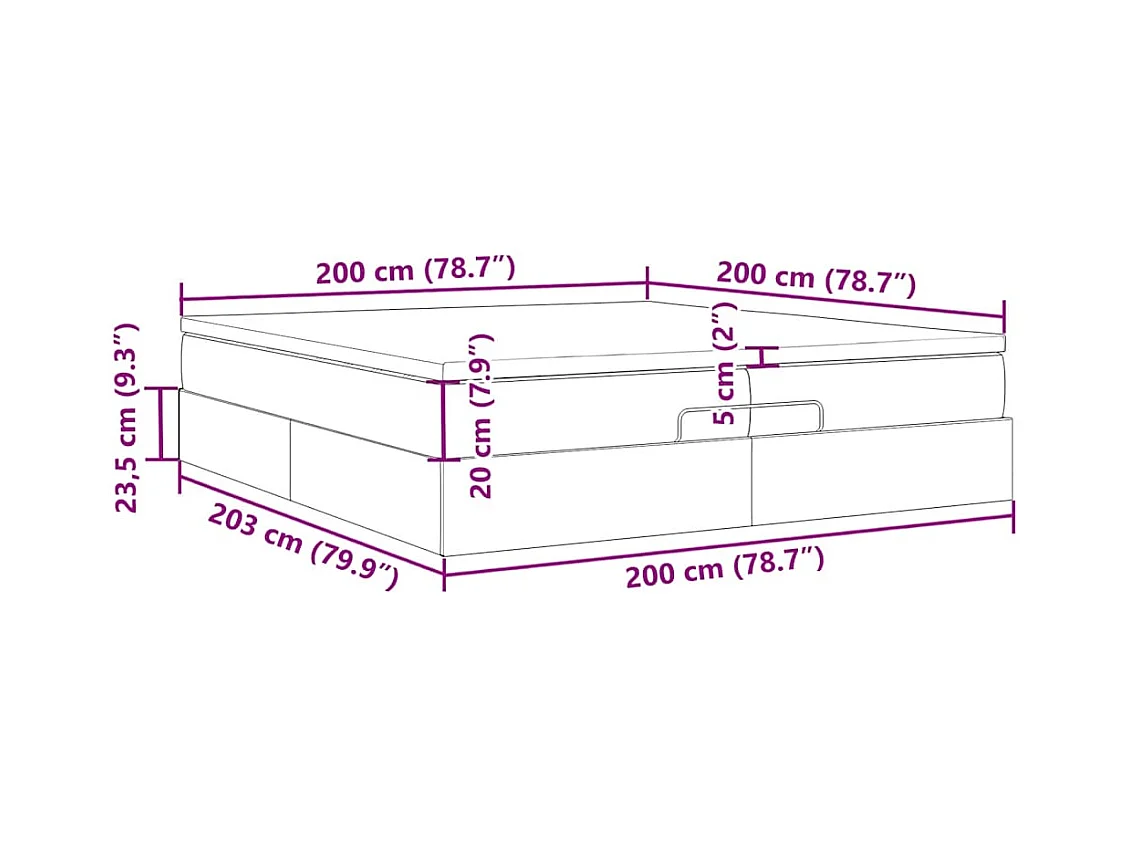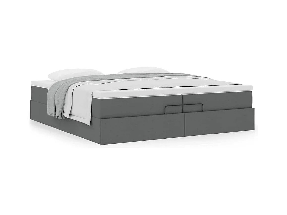 Cadre de lit ottoman avec matelas gris foncé 200x200cm tissu
