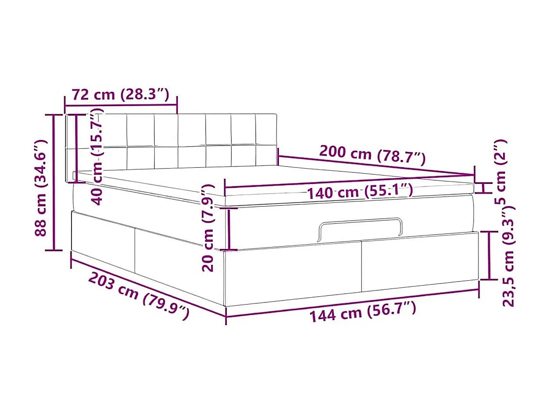 Cadre de lit ottoman avec matelas marron foncé 140x200 cm tissu