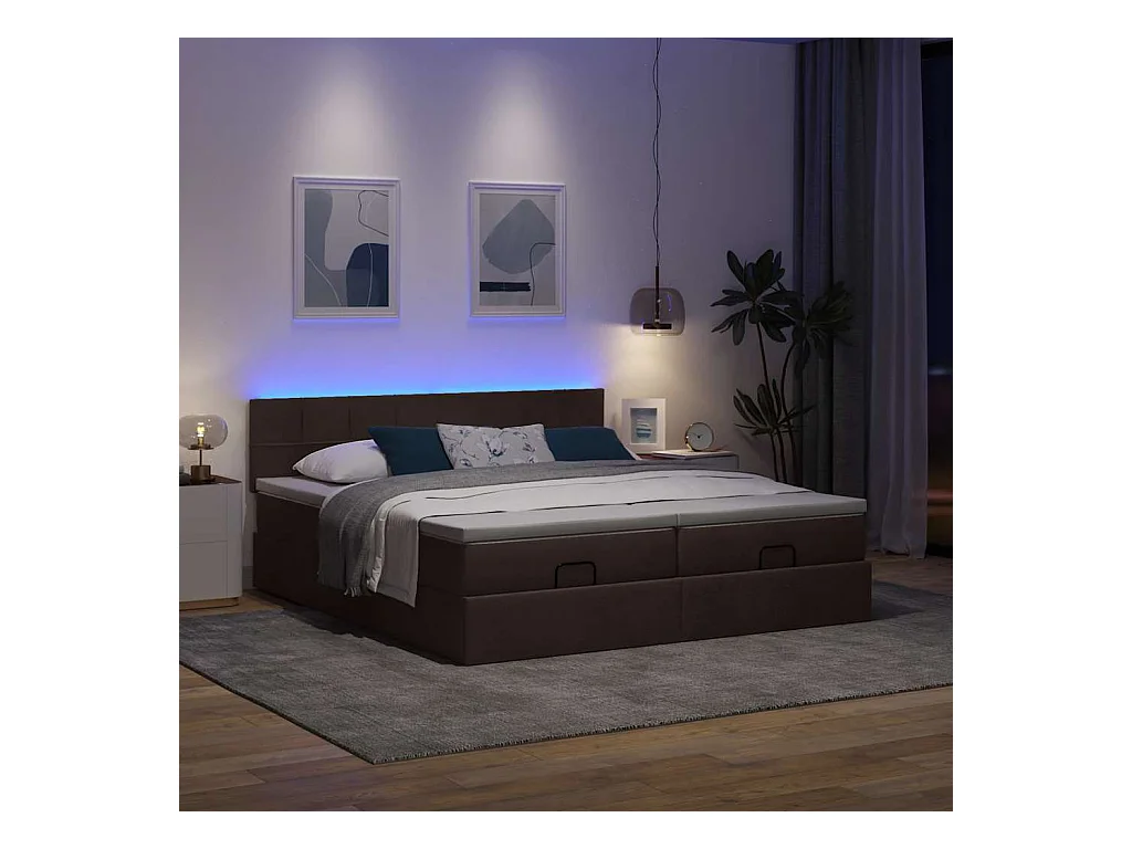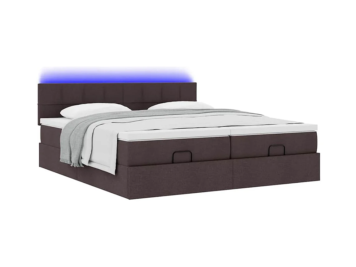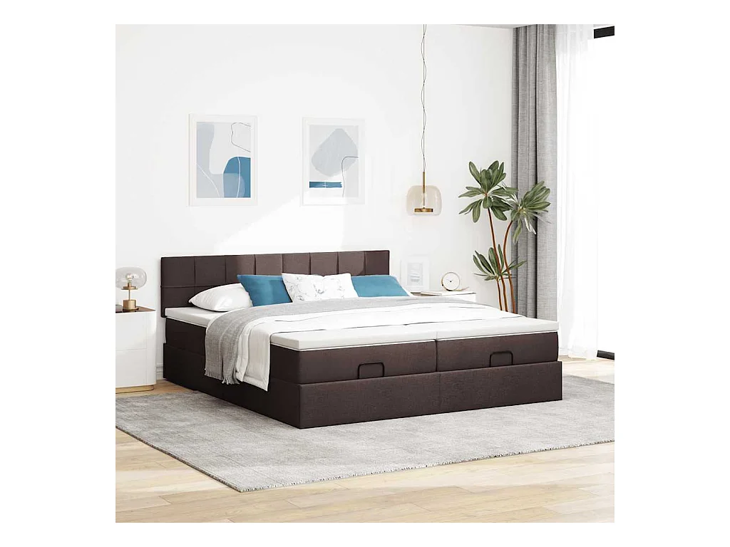 Cadre de lit ottoman avec matelas marron foncé 180x200 cm tissu