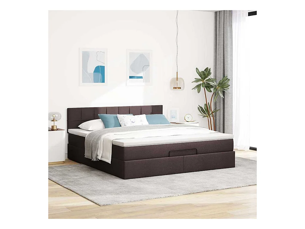 Cadre de lit ottoman avec matelas marron foncé 180x200 cm tissu