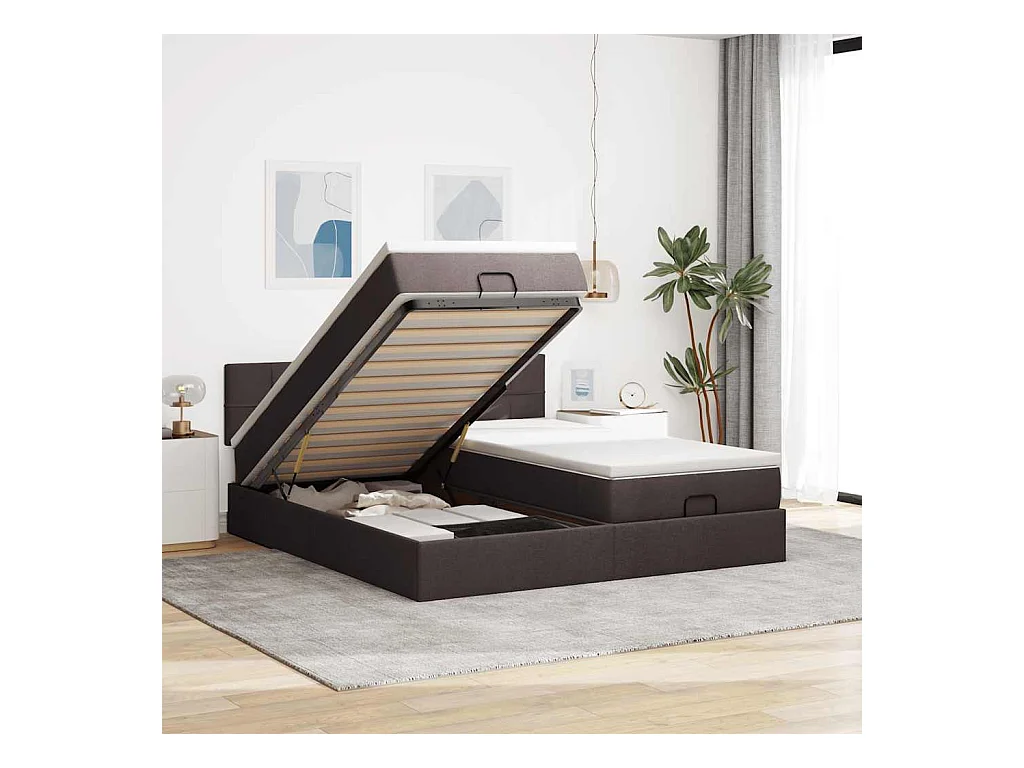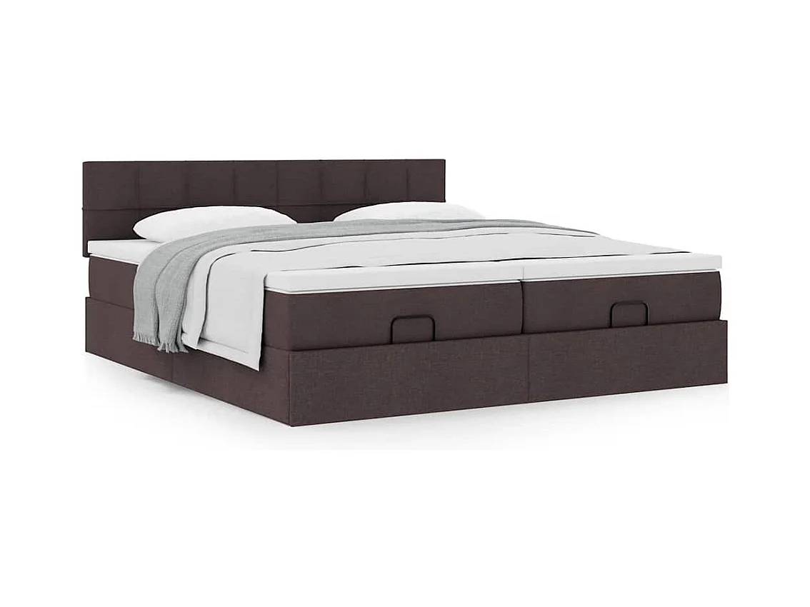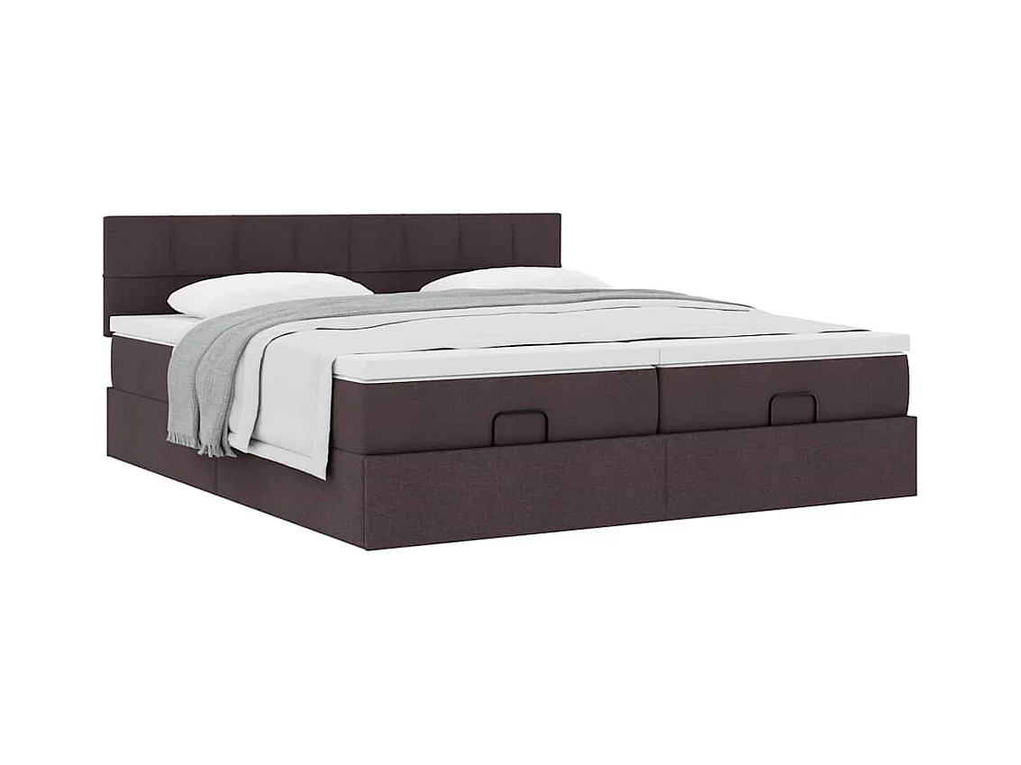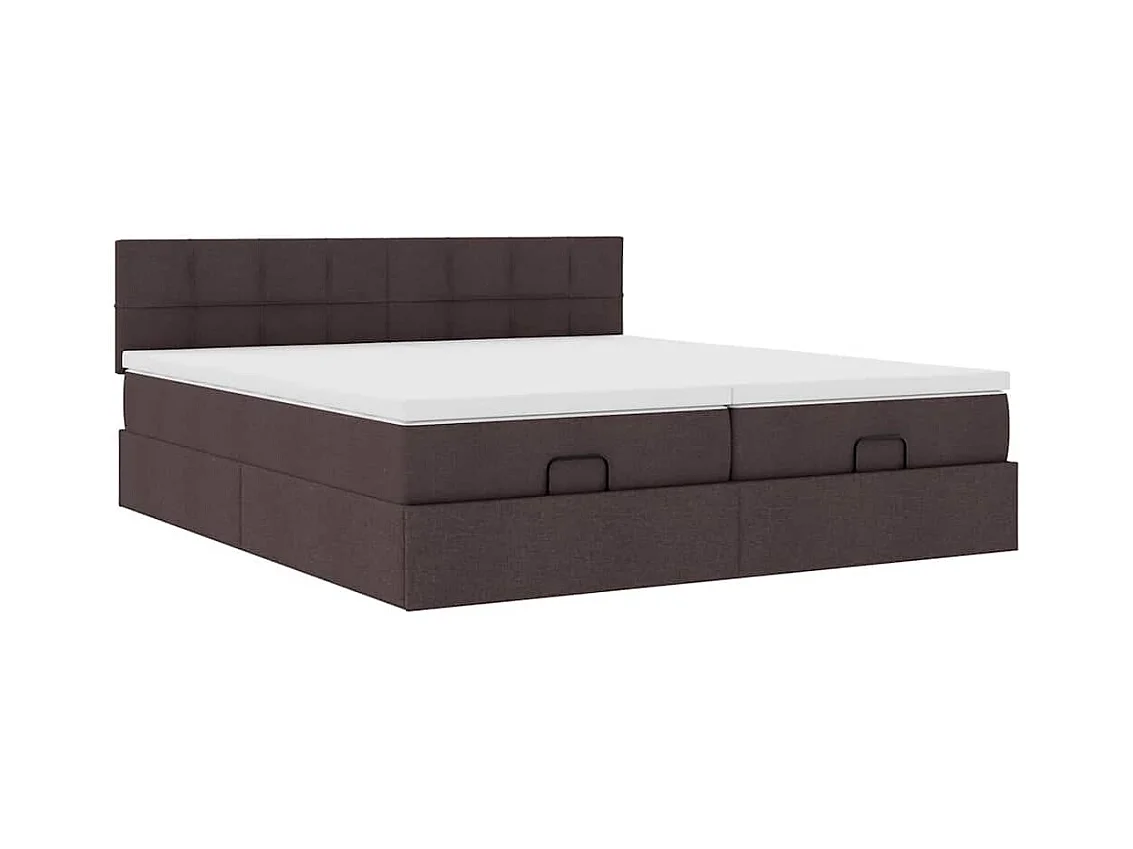 Cadre de lit ottoman avec matelas marron foncé 180x200 cm tissu