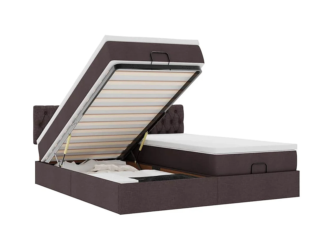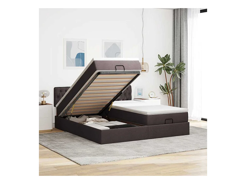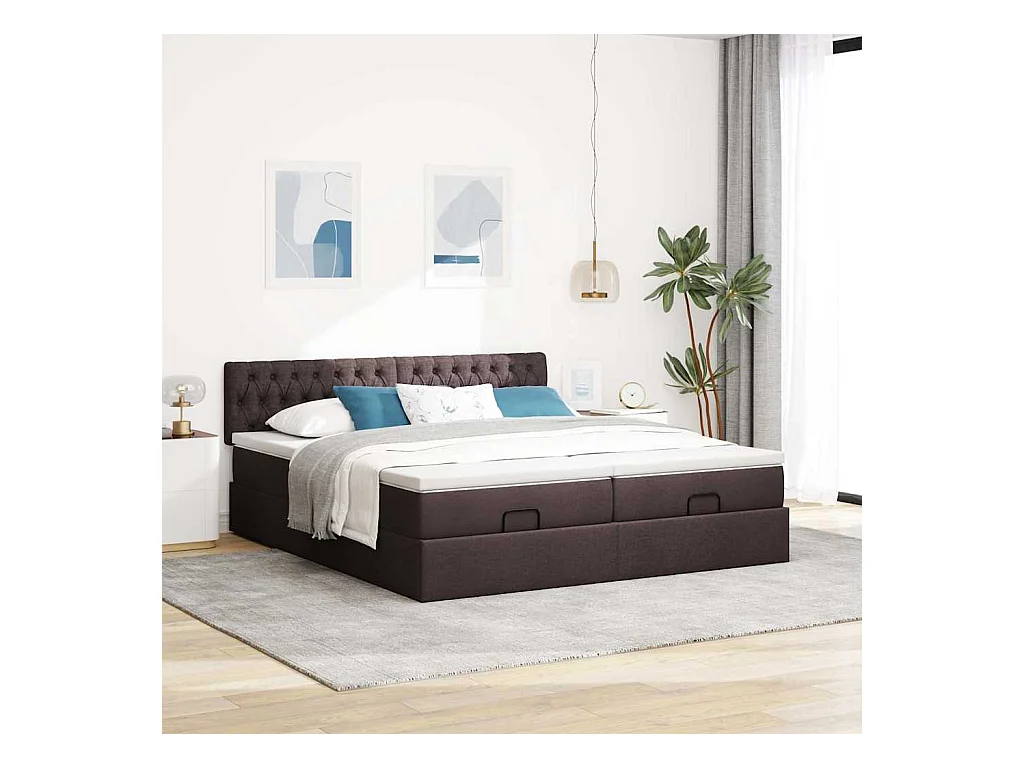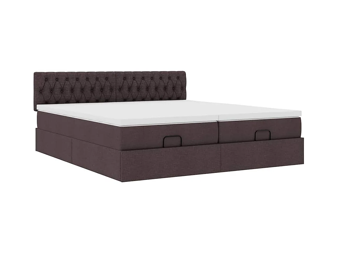 Cadre de lit ottoman avec matelas marron foncé 200x200 cm tissu