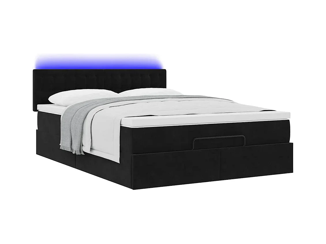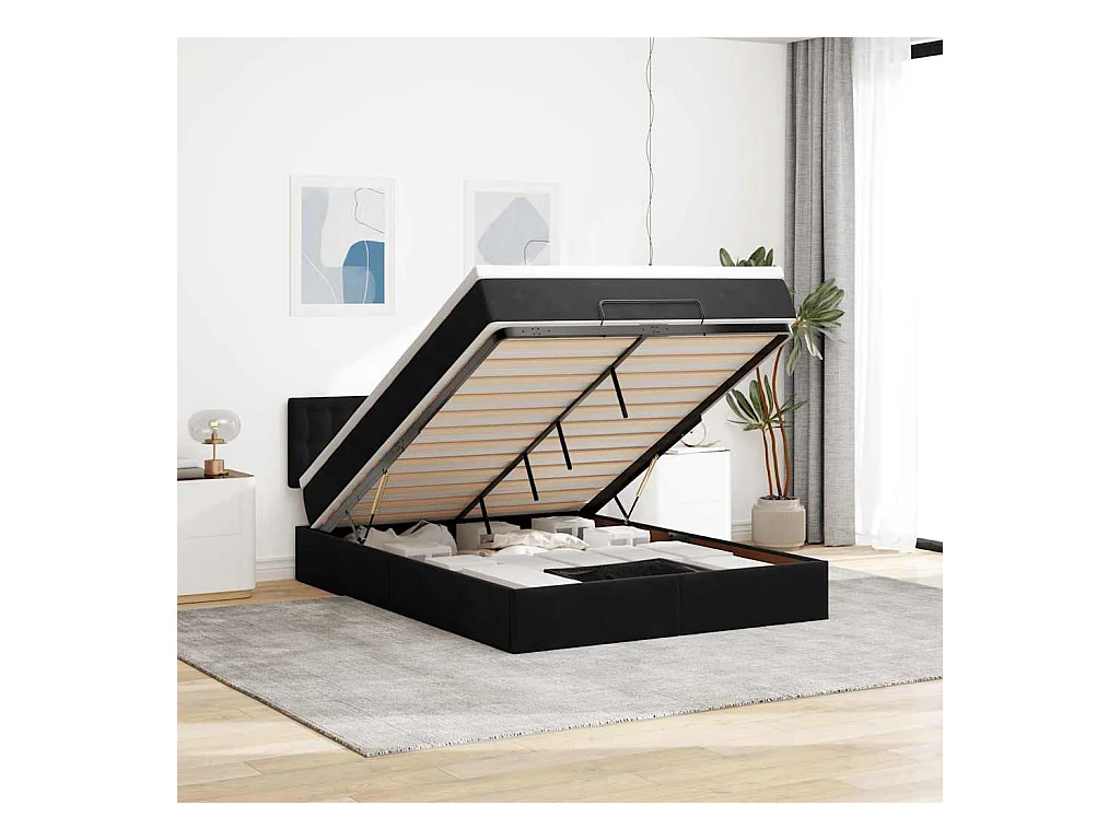 Cadre de lit ottoman avec matelas noir 140x190 cm velours