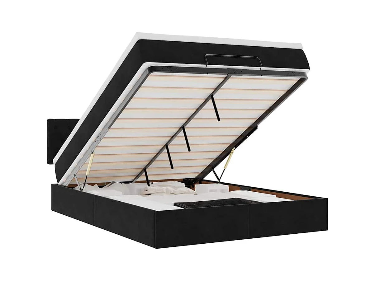 Cadre de lit ottoman avec matelas noir 140x200 cm velours