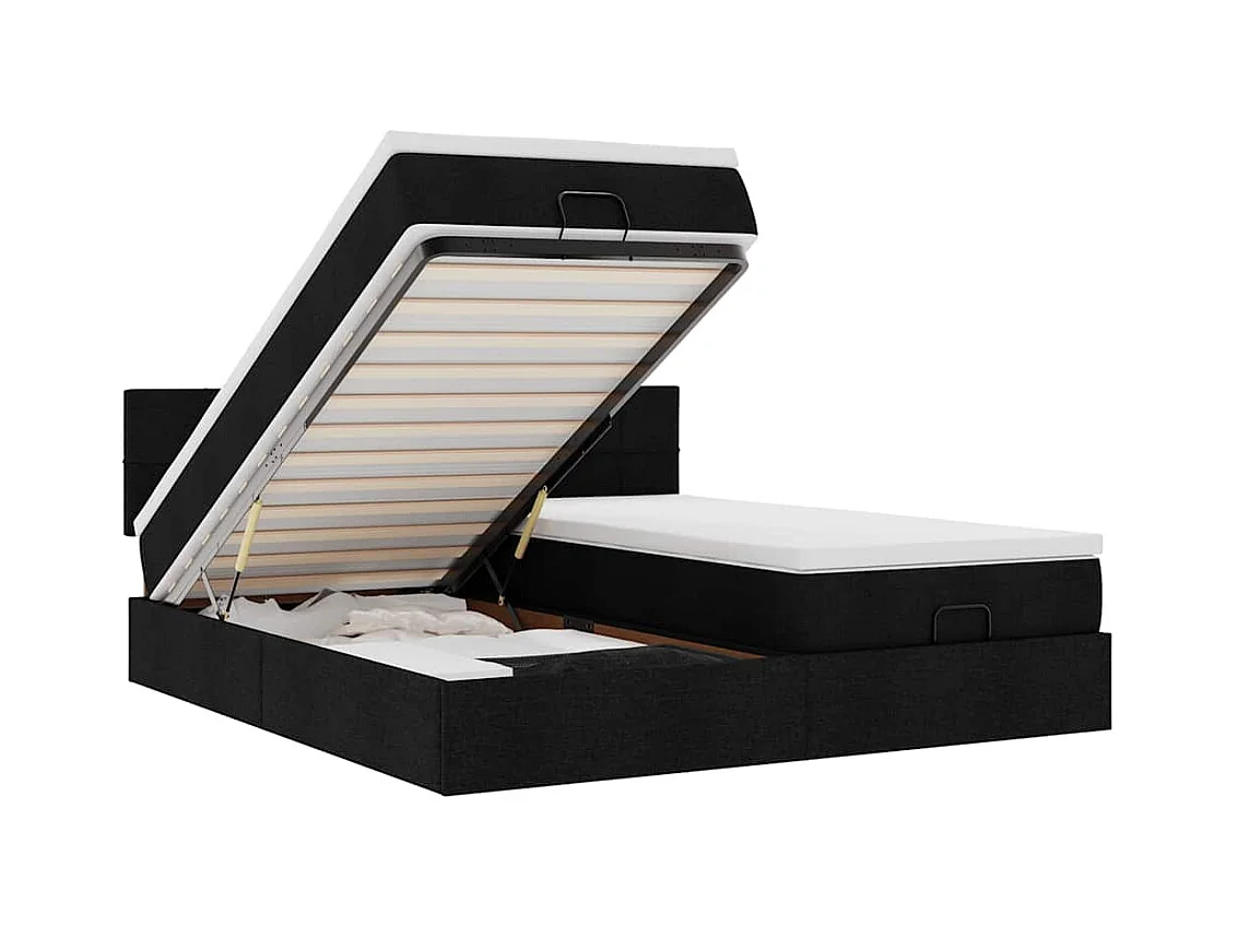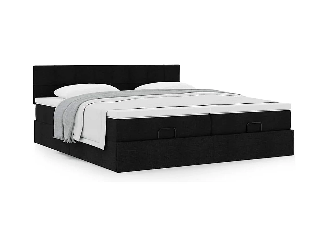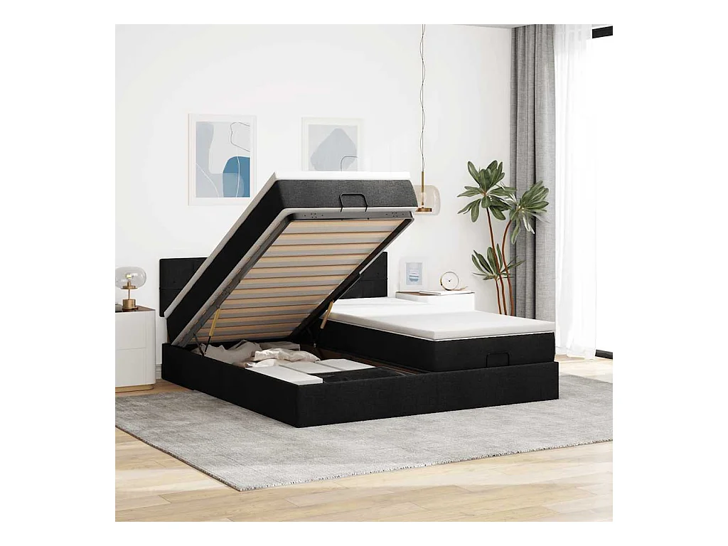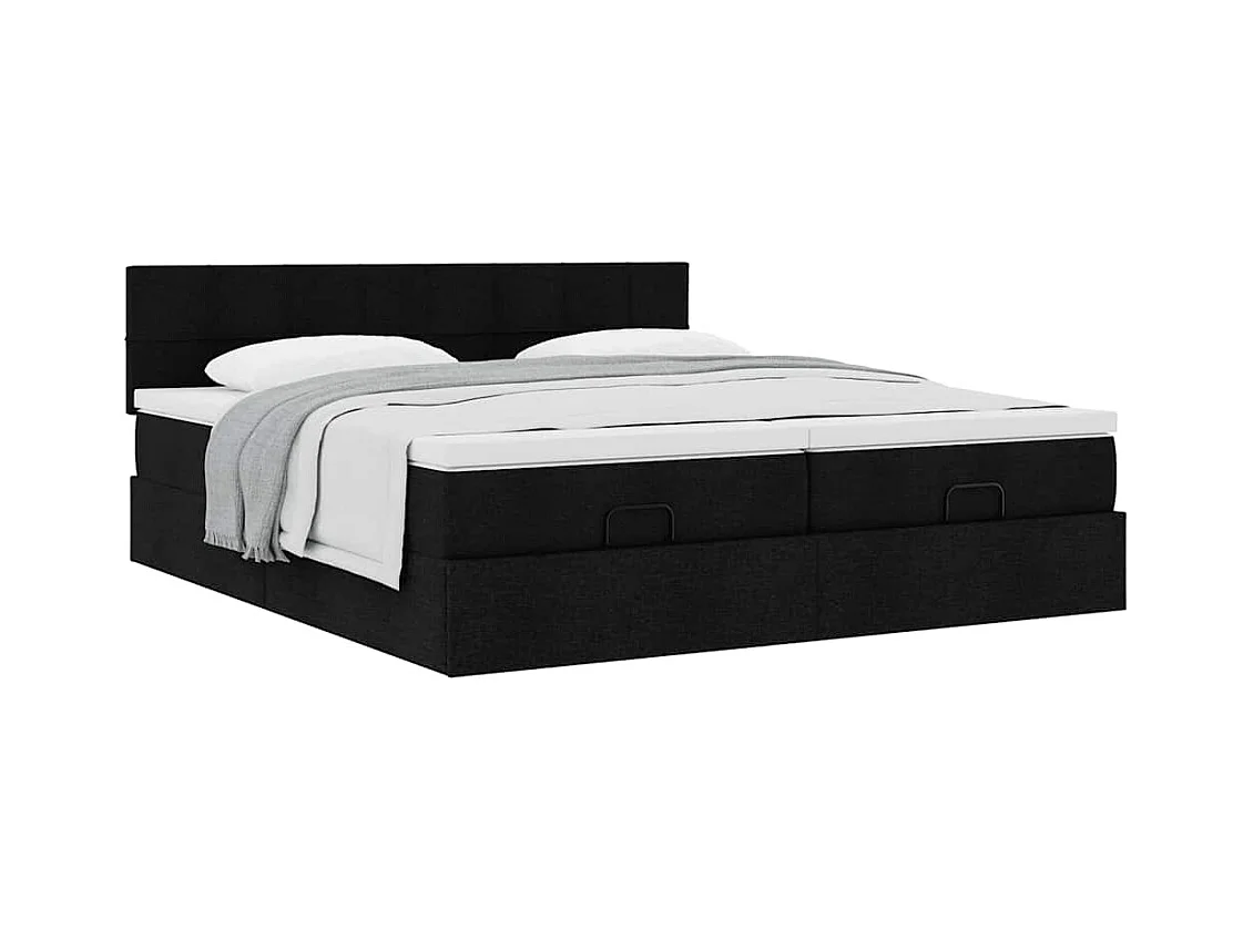 Cadre de lit ottoman avec matelas noir 200x200cm tissu