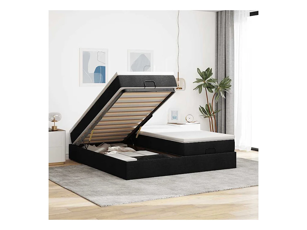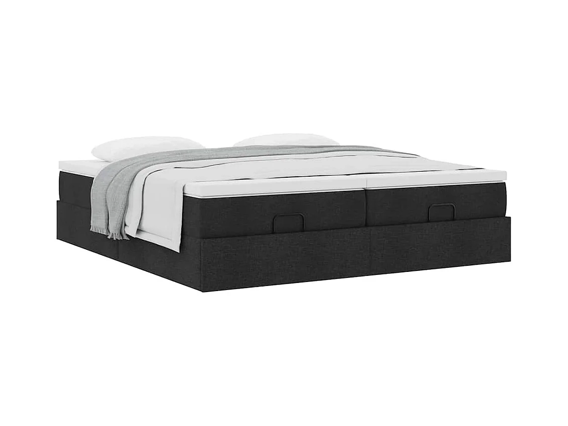 Cadre de lit ottoman avec matelas noir 200x200cm tissu