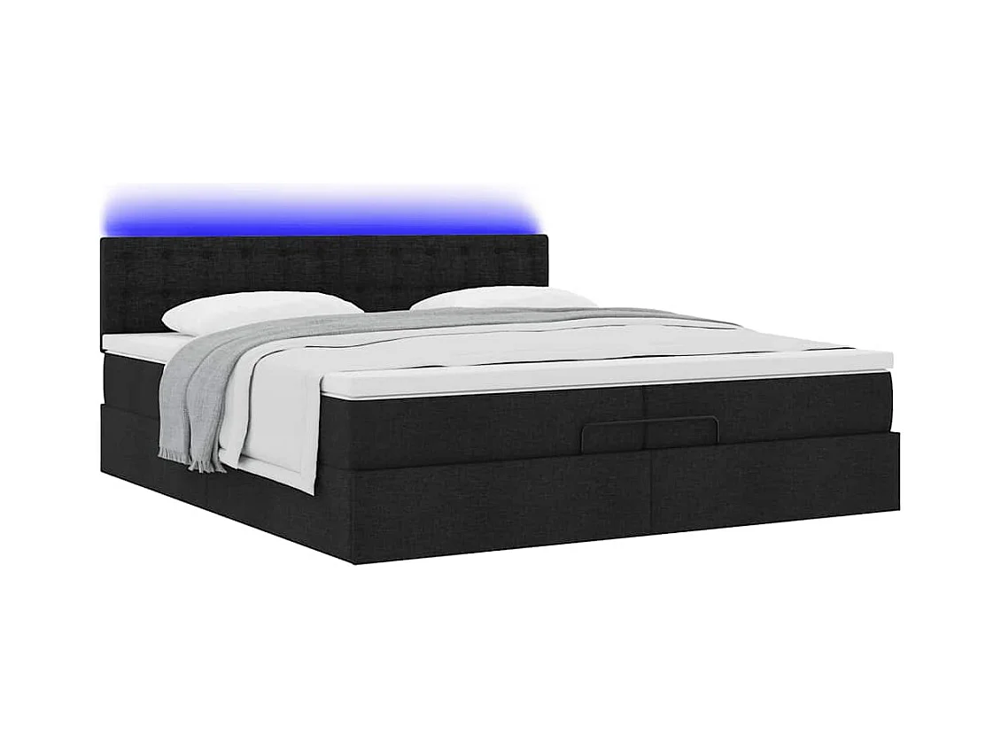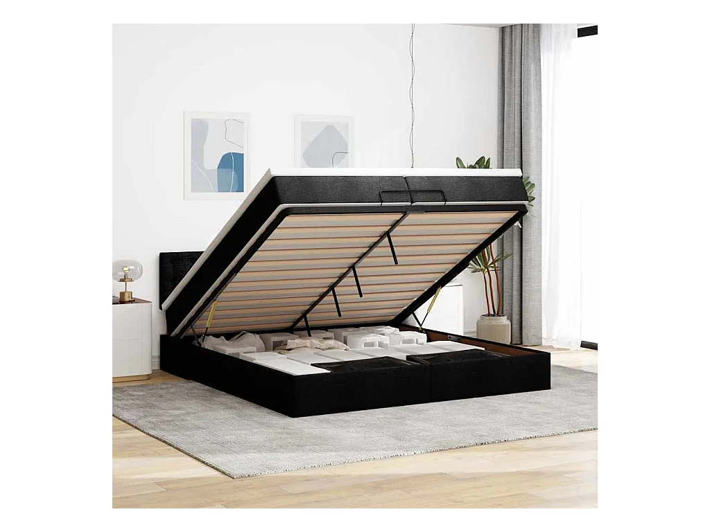 Cadre de lit ottoman avec matelas noir 200x200cm tissu